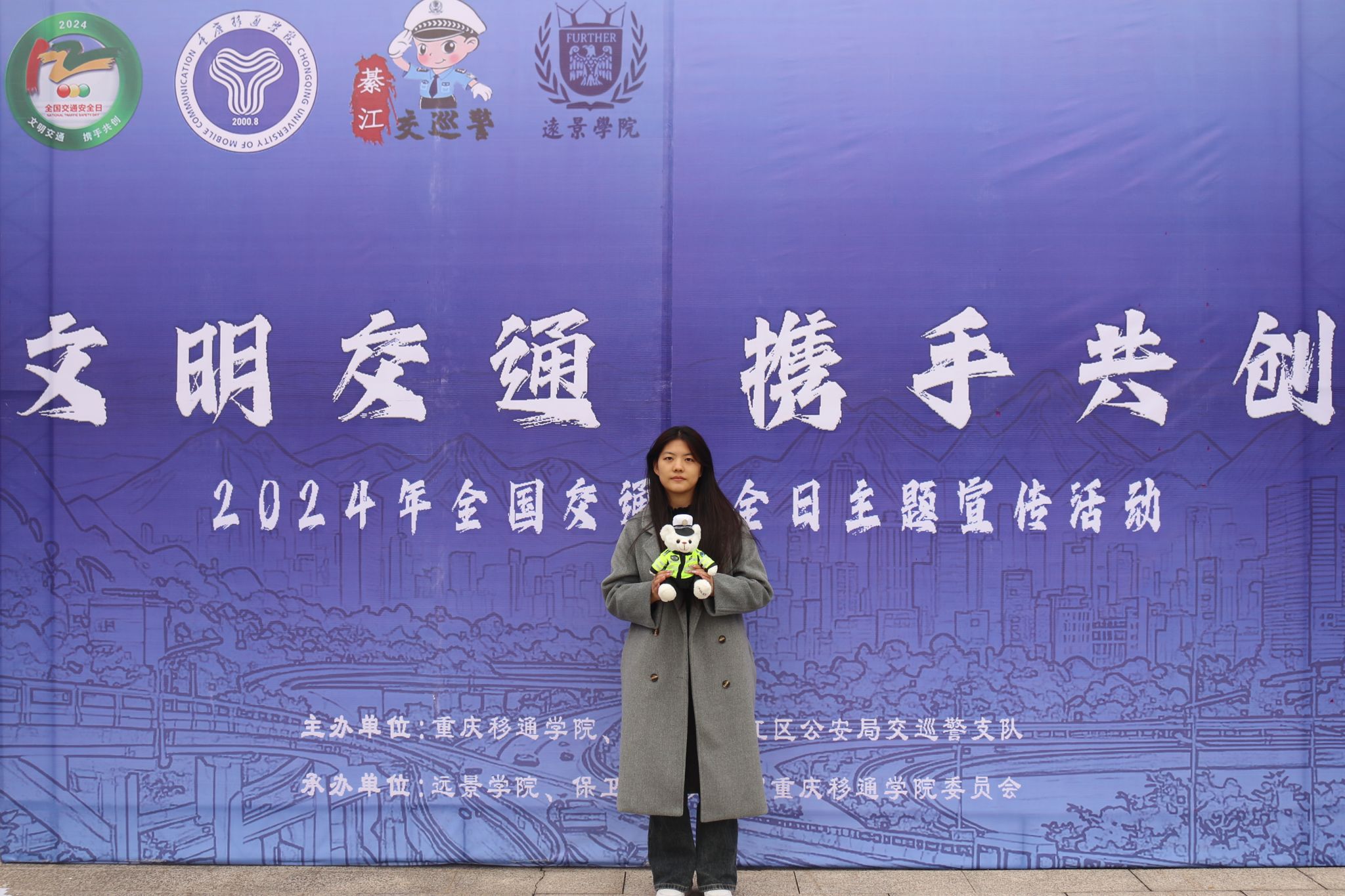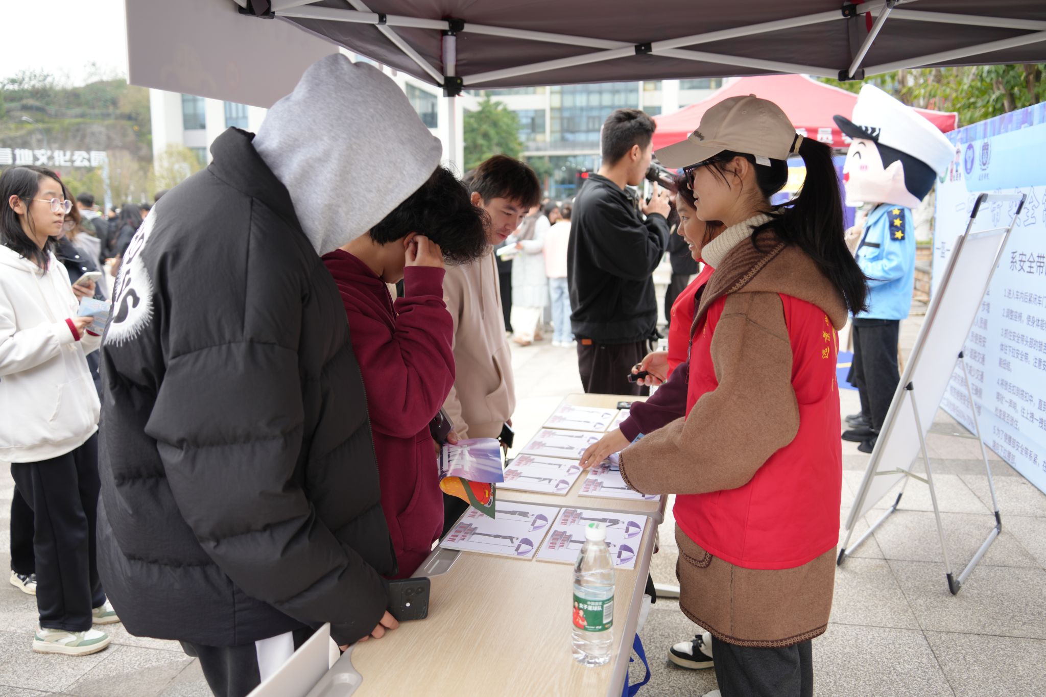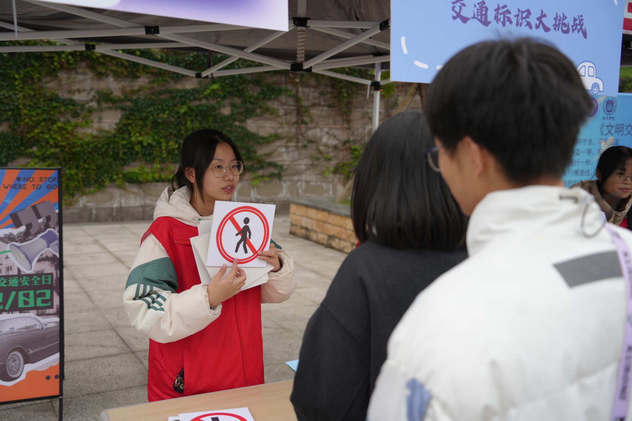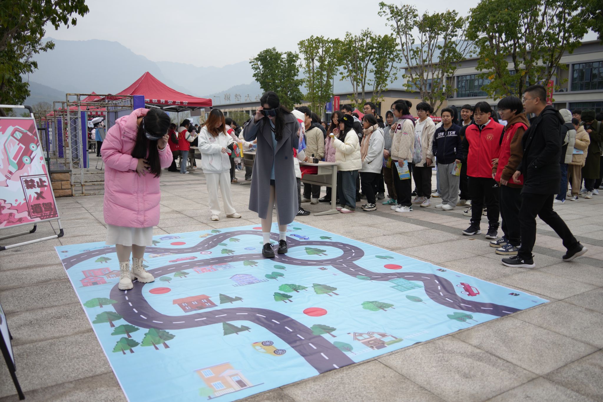 11月29日下午,为积极响应“全国交通安全日”的号召,增强师生交通安全意识,营造安全文明的校园交通环境,学校保卫处联合远景学院、校团委,精心策划、周密筹备,在瀛山图书馆广场举办了以“文明交通,携手共创”为主题的全国文明交通安全日体验活动。此次活动特别邀请到綦江区公安局交巡警支队到场指导,为师生呈上一堂生动且深刻的交通安全教育课,吸引了全体在校师生踊跃参与,在校园内掀起一股关注交通安全、践行文明出行的热潮。