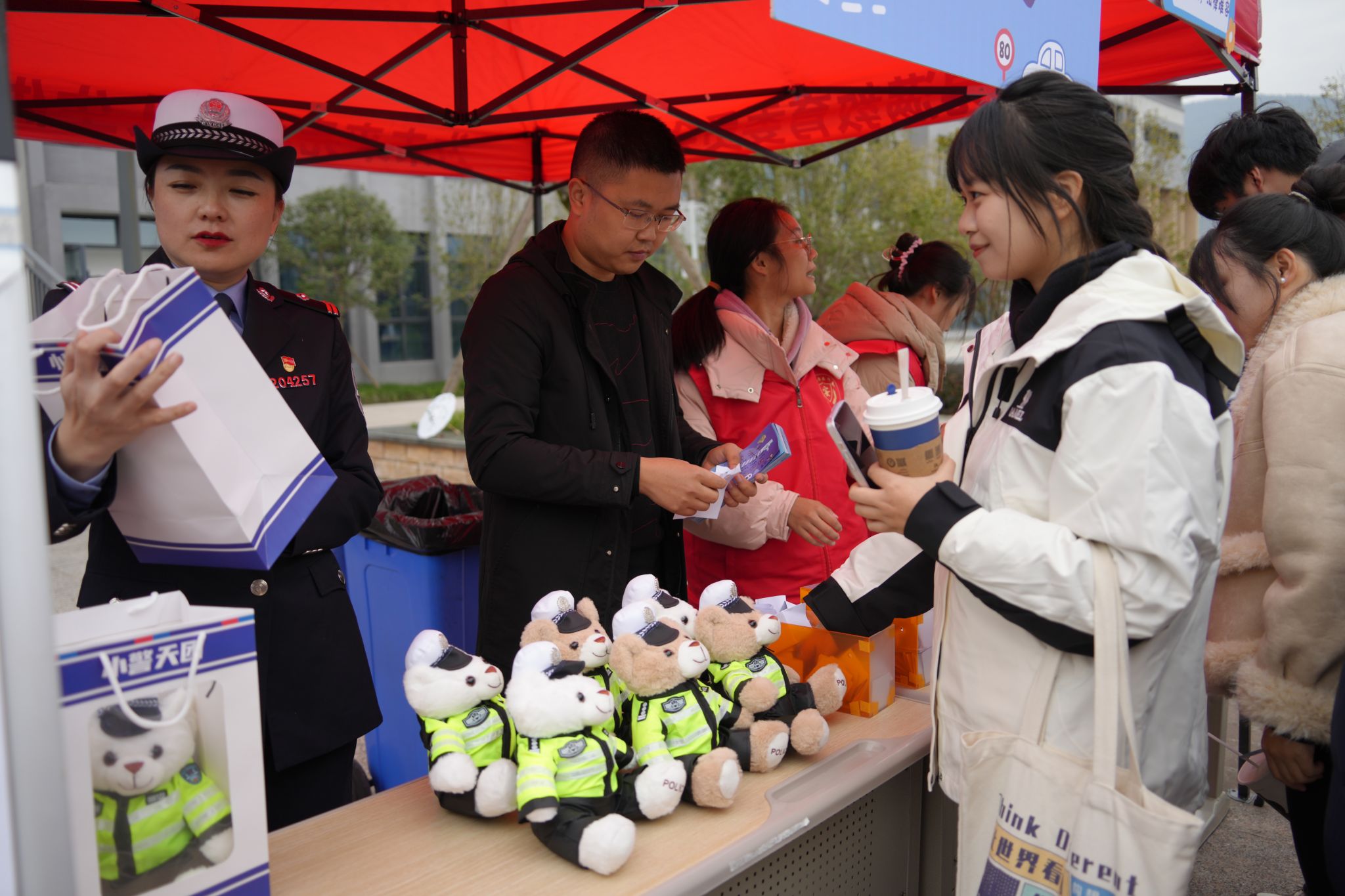 活动还创新地采用盖章集邮形式给予交警小熊玩偶、靠枕、笔记本等丰富纪念品,引得师生们积极穿梭于各体验区,现场气氛热烈非凡,欢声笑语与知识汲取交融共生。