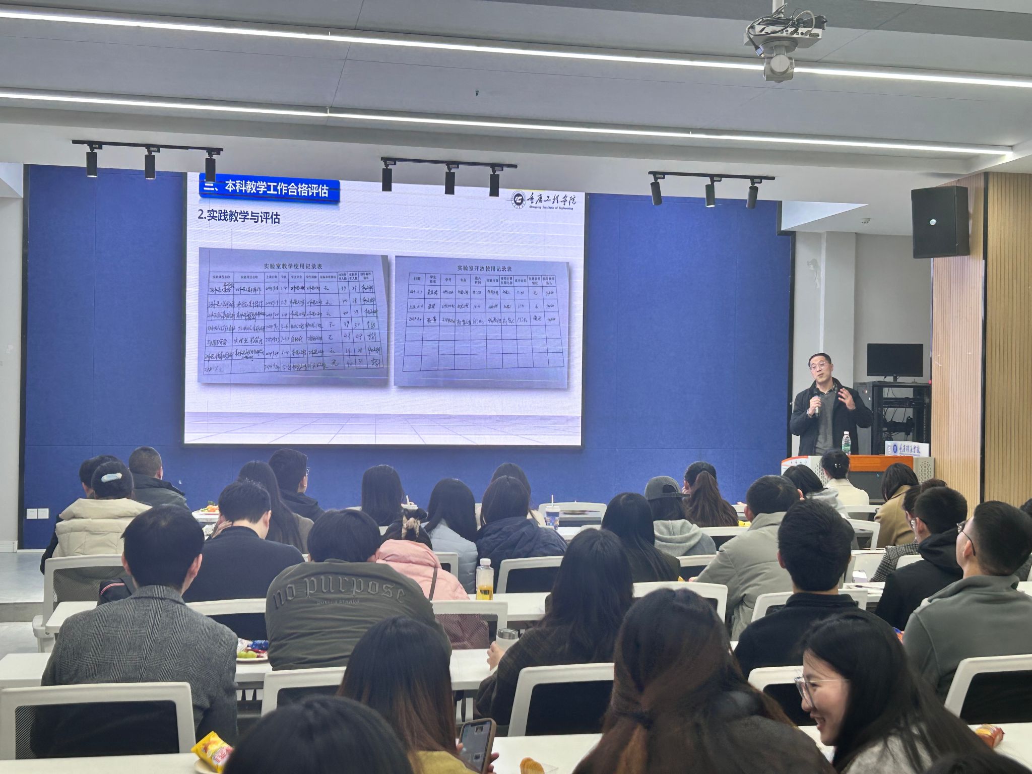 在面向各二级学院的《新建本科高校实验室建设与合格评估》专题讲座中,陈教授基于重庆工程学院成功进行合格评估的宝贵经验,“实验室建设”、“实践教学运行与管理”、“本科教学工作合格评估”、“主要矛盾点及建议”四个方面与老师们分享了实验室建设与合格评估过程中的关键板块和需要重点关注的内容。陈教授指出,实验室建设在高校合格评估中至为重要,实验室建设不仅仅包括硬件设施的完善,更涉及到实验室文化的培育、师资队伍的建设、实验教学的创新以及更多细节工作上的处理。最后,陈教授总结了实验室建设与合格评估中的常见问题与应对策略,积极探索和寻求适合本校的实验室建设与管理模式。