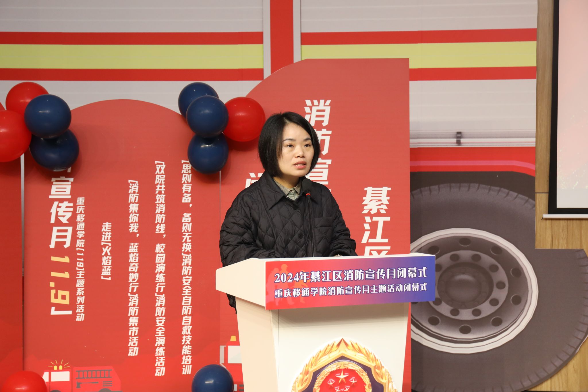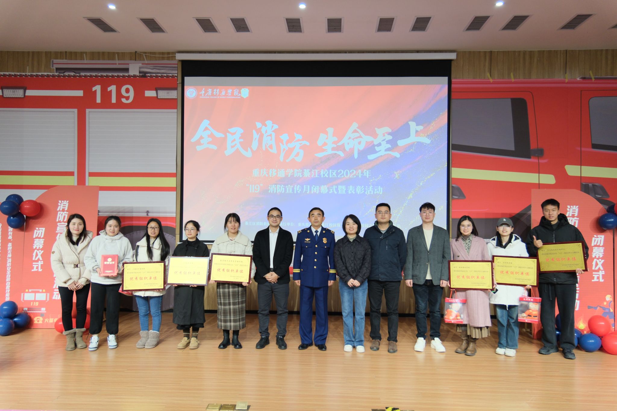 12月4日下午,重庆移通学院綦江校区2024年“119”消防宣传月闭幕式暨表彰活动在贤者楼131成功举办。