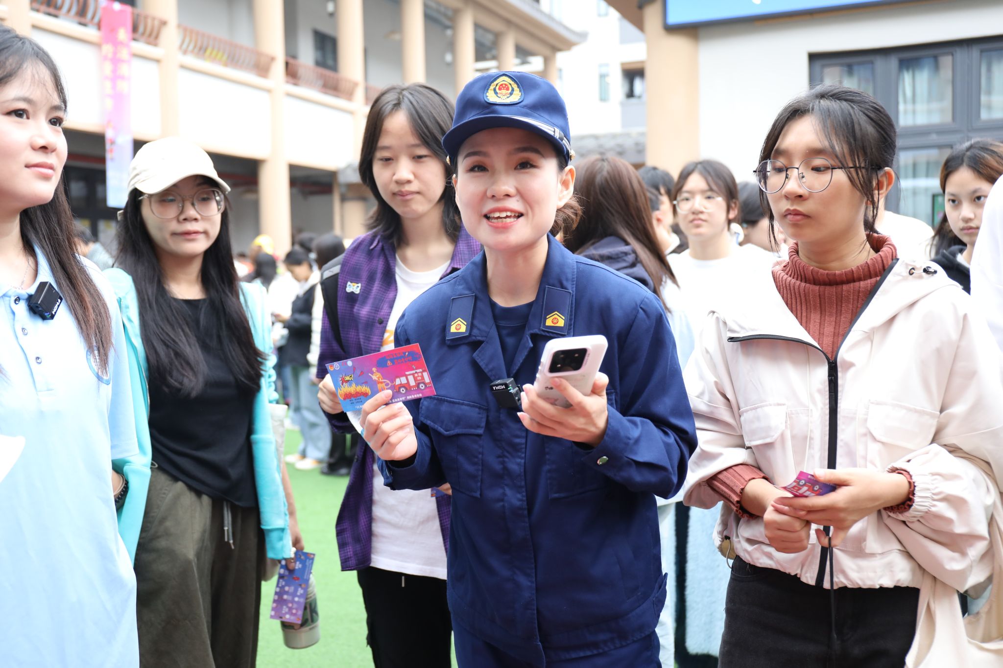 最后,袁美军支队长强调:“消防安全工作任重道远,绝非一朝一夕之功,必须持之以恒、毫不松懈”。他全面总结了本次全区消防宣传月活动,并对学校消防宣传月活动成果给予高度认可。同时,他为现场老师、同学们讲了一场消防安全知识科普课,并以现场烟感报警器为大家讲解火灾逃生技巧及安全事项,希望全体师生能持续参与到消防安全管理中,全力筑牢坚不可摧的校园安全防线,共同守护校园的平安稳定。
