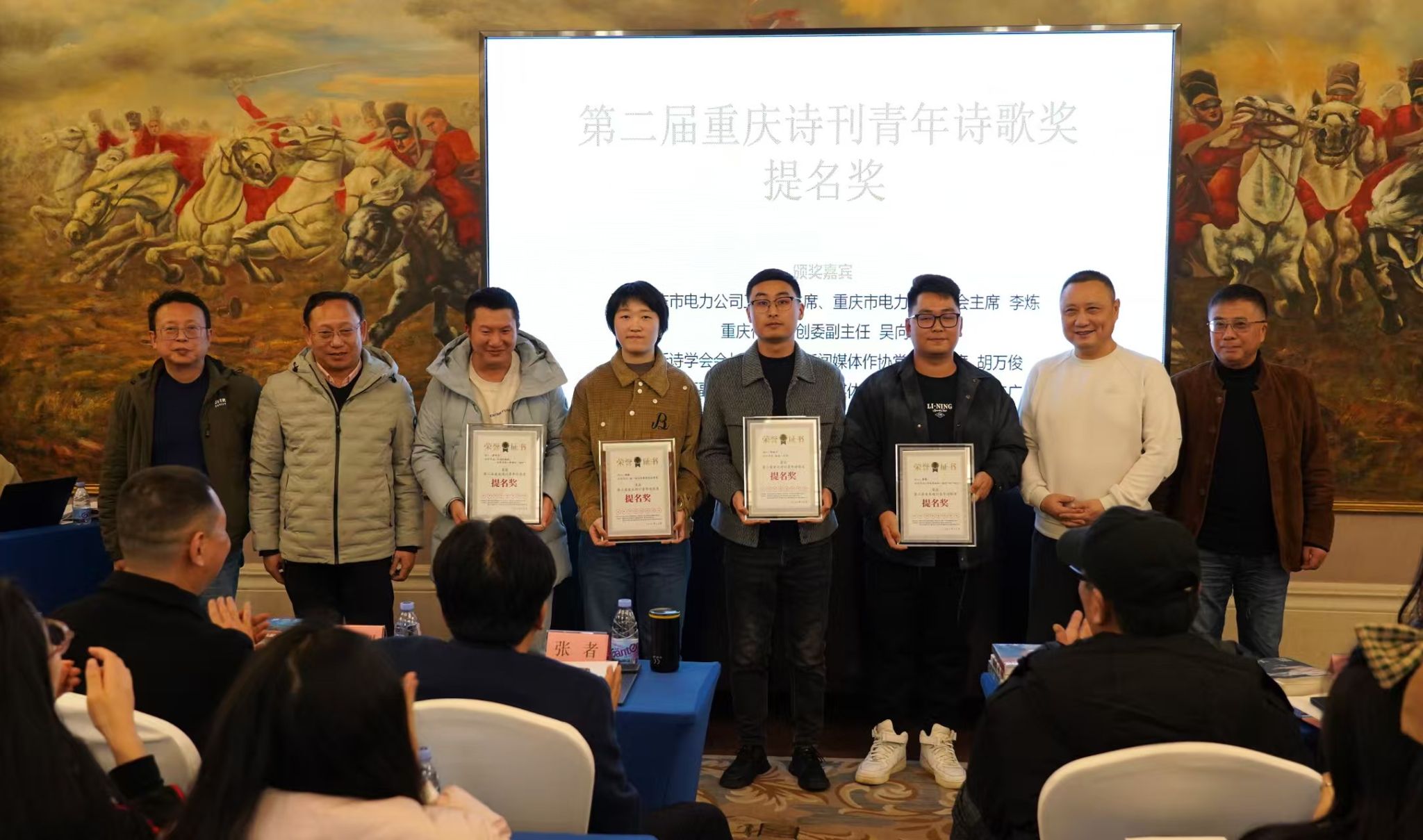 《重庆诗刊》自2015年创刊以来,致力于发掘和培养重庆本土青年诗歌人才,推动重庆诗歌事业的发展。为了激励有才华的青年诗人,激发他们的创作潜力,重庆诗刊青年诗歌奖自2022年设立以来,已经成为重庆诗坛的重要奖项。2024年,第二届青年诗歌奖如期展开评选,此次评奖由重庆市作协文学成果转化工作委员会、重庆市作协诗歌创作委员会指导,《重庆诗刊》《钓鱼城》杂志、重庆新诗学会等单位主办。评选范围包括《重庆诗刊》2023、2024年发表的诗歌作品,参评者均为籍贯重庆、年龄不超过45岁的青年诗人。评审委员会由王顺彬、吴向阳、蒋芸徽、欧文礼、吴沛、李炼、大窗、刘清泉、姚彬、胡中华等专家组成,经过严格、公正的评审,最终评选出2个主奖、3个新锐奖及4个提名奖,并于12月6日举行了隆重的颁奖典礼。