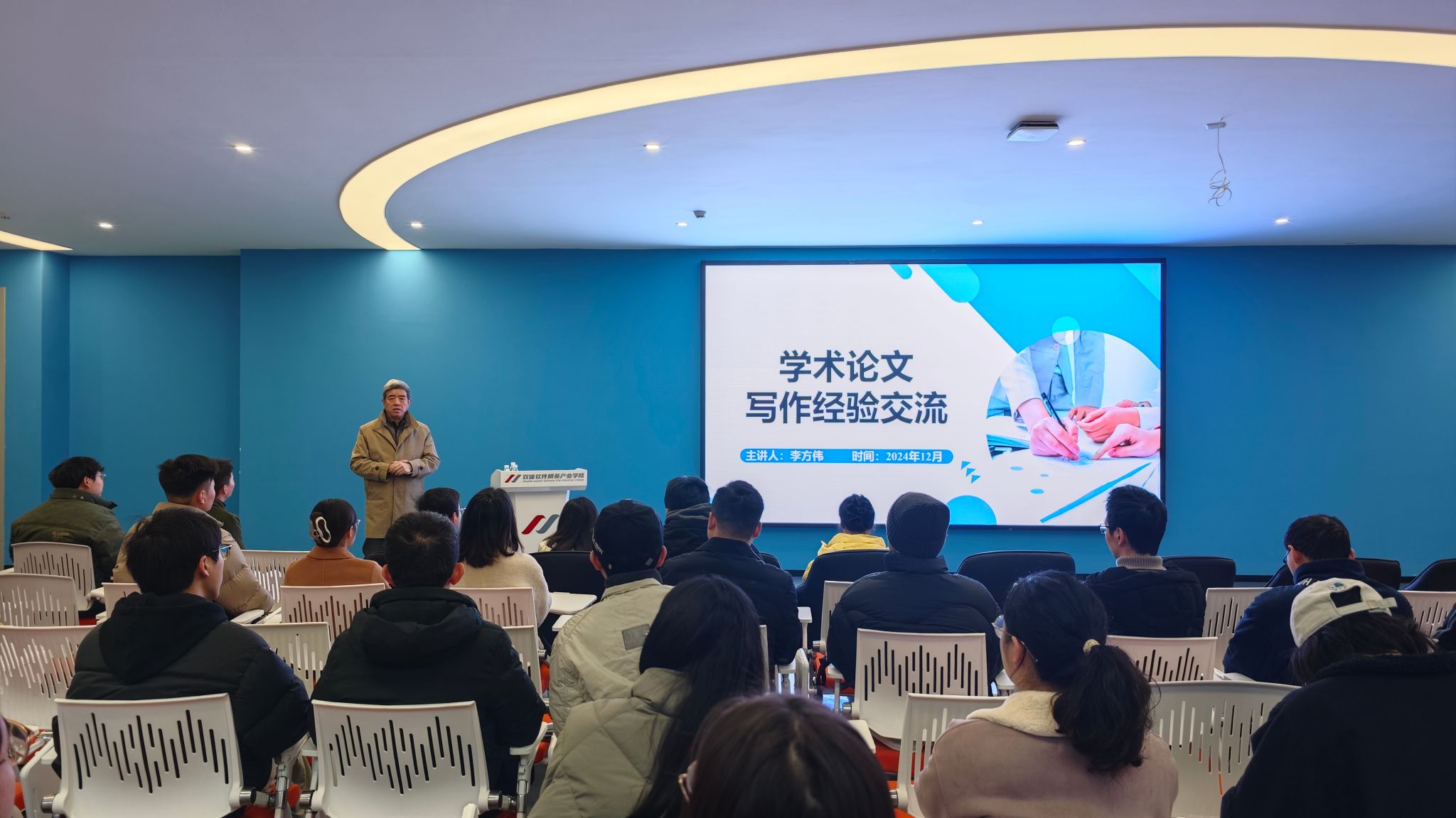 在正式进入讲座主题之前,信安产业研究室负责人李帅军首先对研究室近年来取得的成果进行了简要汇报,随后李方伟教授开始了他的讲座。李教授首先对学术论文进行了概述并强调了其在科研领域的重要性。他指出,学术论文不仅是研究成果的记录和传播工具,也是学者间交流思想、检验理论的重要平台。李教授提到,一篇优秀的学术论文应具备明确的研究问题、严谨的方法论、可靠的数据支持以及清晰的结论。