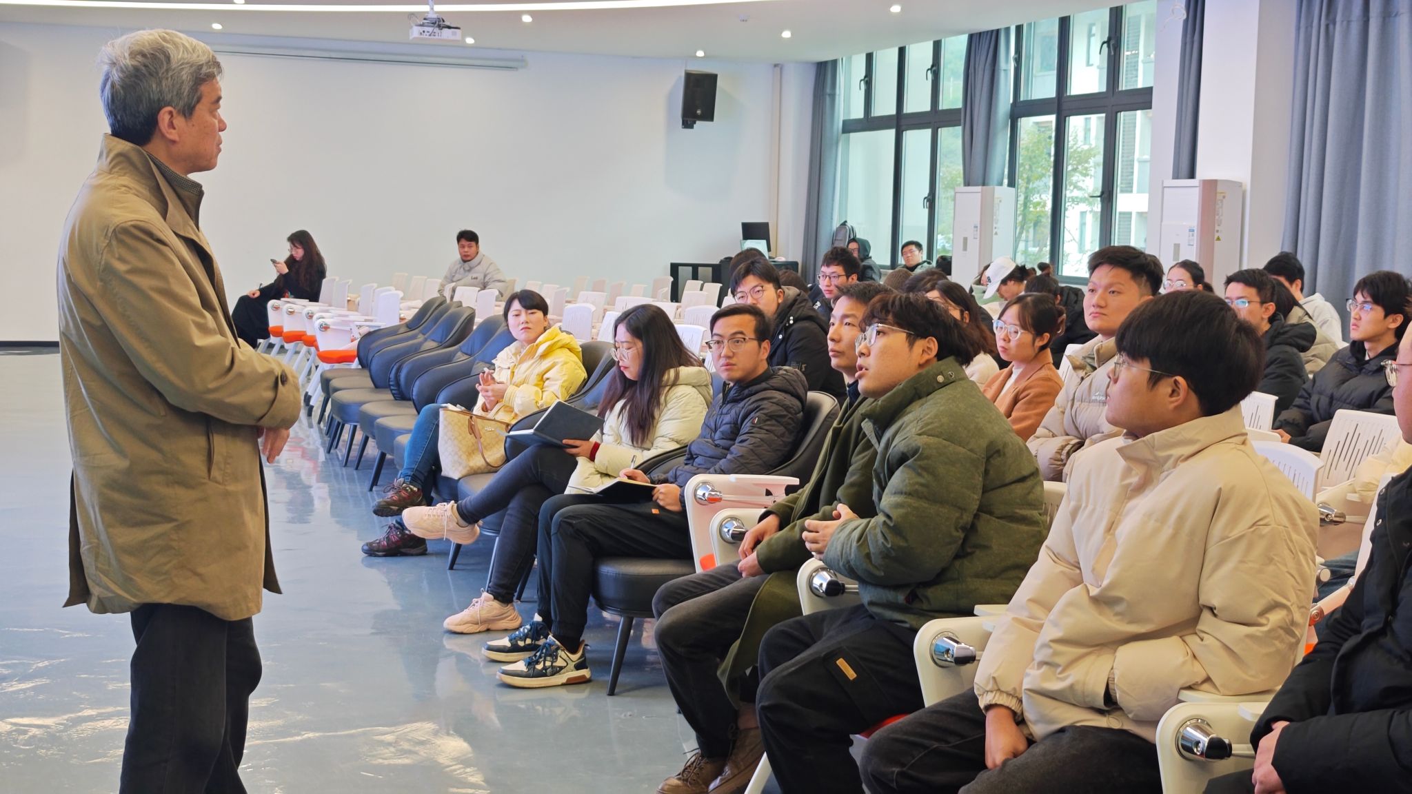 在提问环节,老师们踊跃参与。他们结合自身情况,针对论文的撰写细节、论文研究方向的选择、研究方向的可行性向李教授进行了提问,李教授都一一给予了针对性的解答,而且还分享了自己的一些经验。现场掌声不断,老师们收获颇丰。