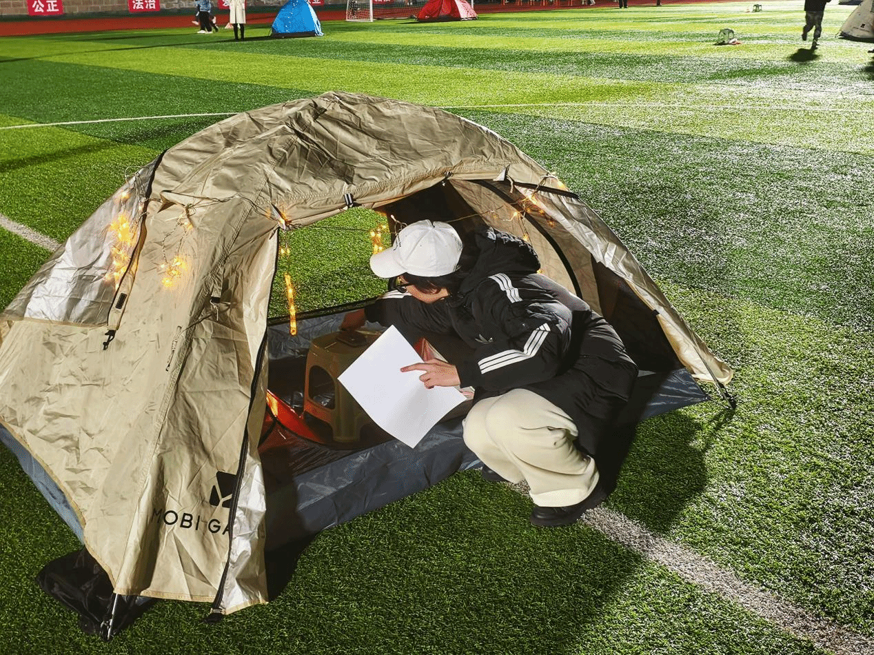 比赛现场的氛围紧张而热烈。等待出发的参赛者们或三五成群地讨论着比赛策略,或独自一人在角落里默默思考。而已经完成比赛的同学们则兴奋地交流着比赛中的趣事和心得,整个足球场被这种积极向上的氛围所包围,充斥着青春的力量和活力。