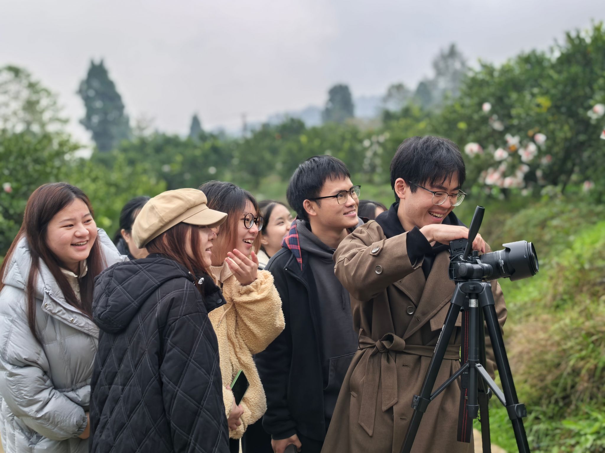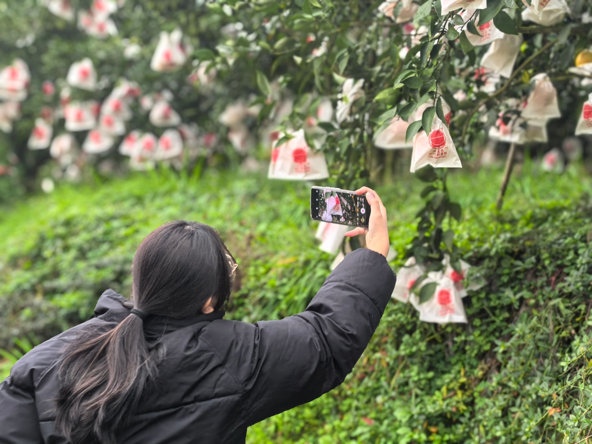 座谈会后,师生们前往了耙耙柑产业园进行实地探访。在果园中,同学们不仅感受到了丰收的喜悦,还体验到了田间劳作的乐趣。他们挣脱了学校的束缚,来到田野间、果园里,尽情地享受着这段快乐的时光,并用手机记录下这美好的瞬间,拍摄出自己的作品。