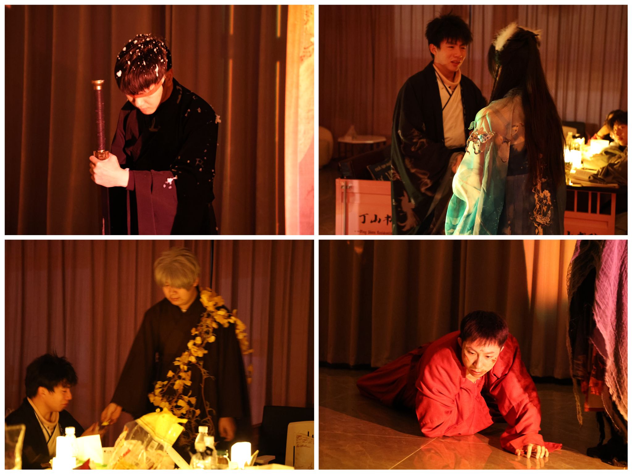《寒门》的演绎环节尤为精彩,“诡扯沉浸剧场”的DM和NPC通过专业的角色塑造和细腻的情感表达,将剧本中的情节与人物栩栩如生地展现在师生面前。大家纷纷为了角色的命运而落泪,白启慎老师表示“这不仅是剧本杀,更像是一场互动话剧,太动容了。”文旺同学说到“哭麻了,太沉浸了,感觉自己亲身经历了一般。”逯俊哲同学赞叹“太厉害太专业了,我也要成为这样优秀的DM!”