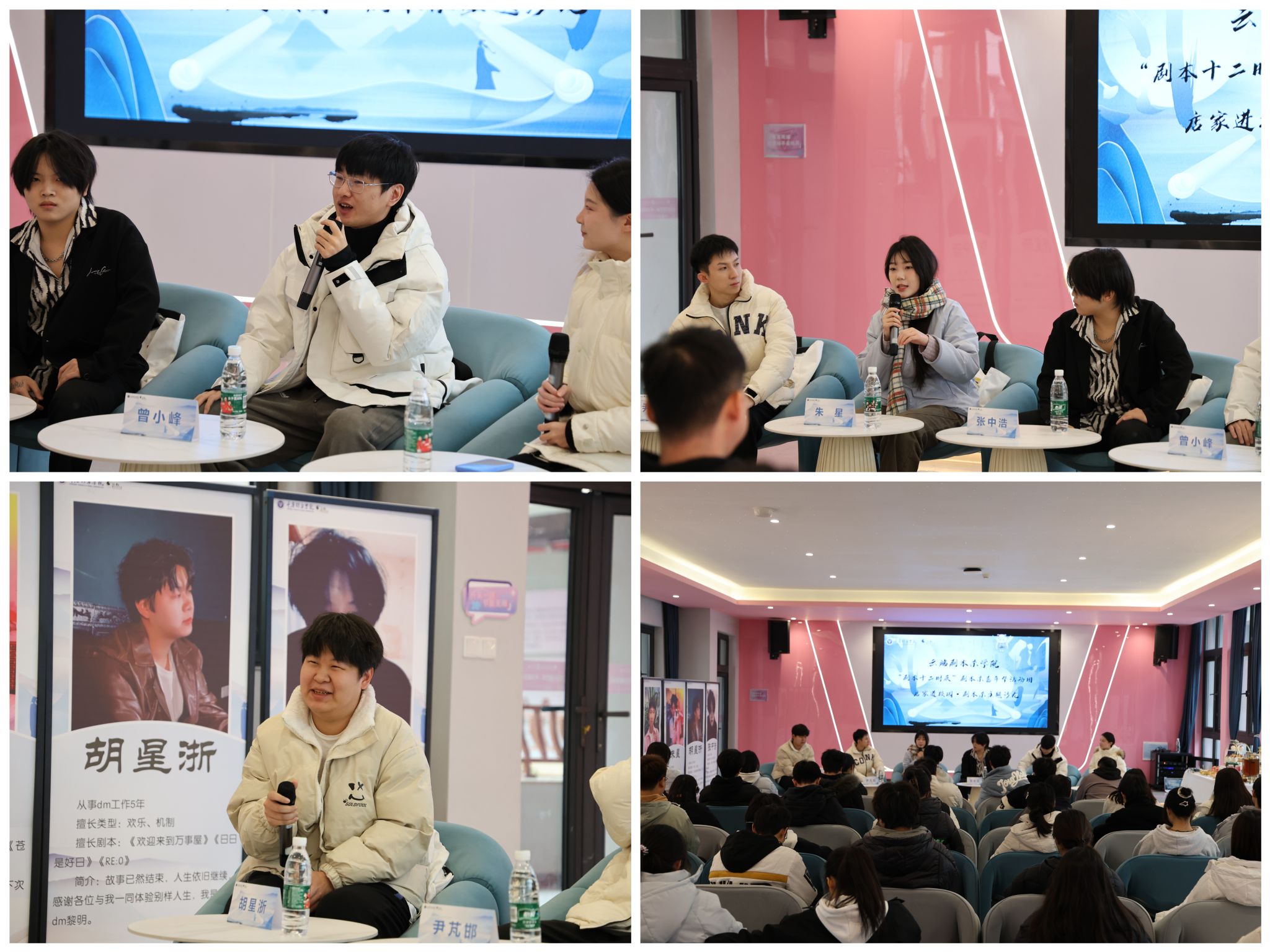 沙龙于下午2点在丁山书院射手座·多功能空间举行,由云端剧本杀学院负责人陈雪梅主持,轻松温馨的氛围里,“诡扯沉浸剧场”的主理人和4位优秀DM进行了自我介绍,展现了其专业能力及对学校成立剧本杀学院的高度肯定。