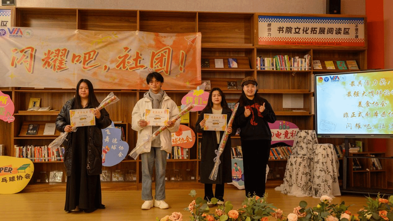 为加强学生社团凝聚力,提升自我服务、自我管理、自我监督的职能,实现学生社团热爱精神传承与发展,总结本年度学生社团和学生社团管理中心的各项工作,同时对最具潜力、最具魅力、最具活力代表社团进行表彰,培养社团进取的思想,打造榜样社团的力量,激励其余社员积极、认真、创新地开展社团工作。12月22日,学生社团管理中心在古剑书院剑书阁开展“闪耀吧!社团——2024学生社团年度总结表彰大会”。
