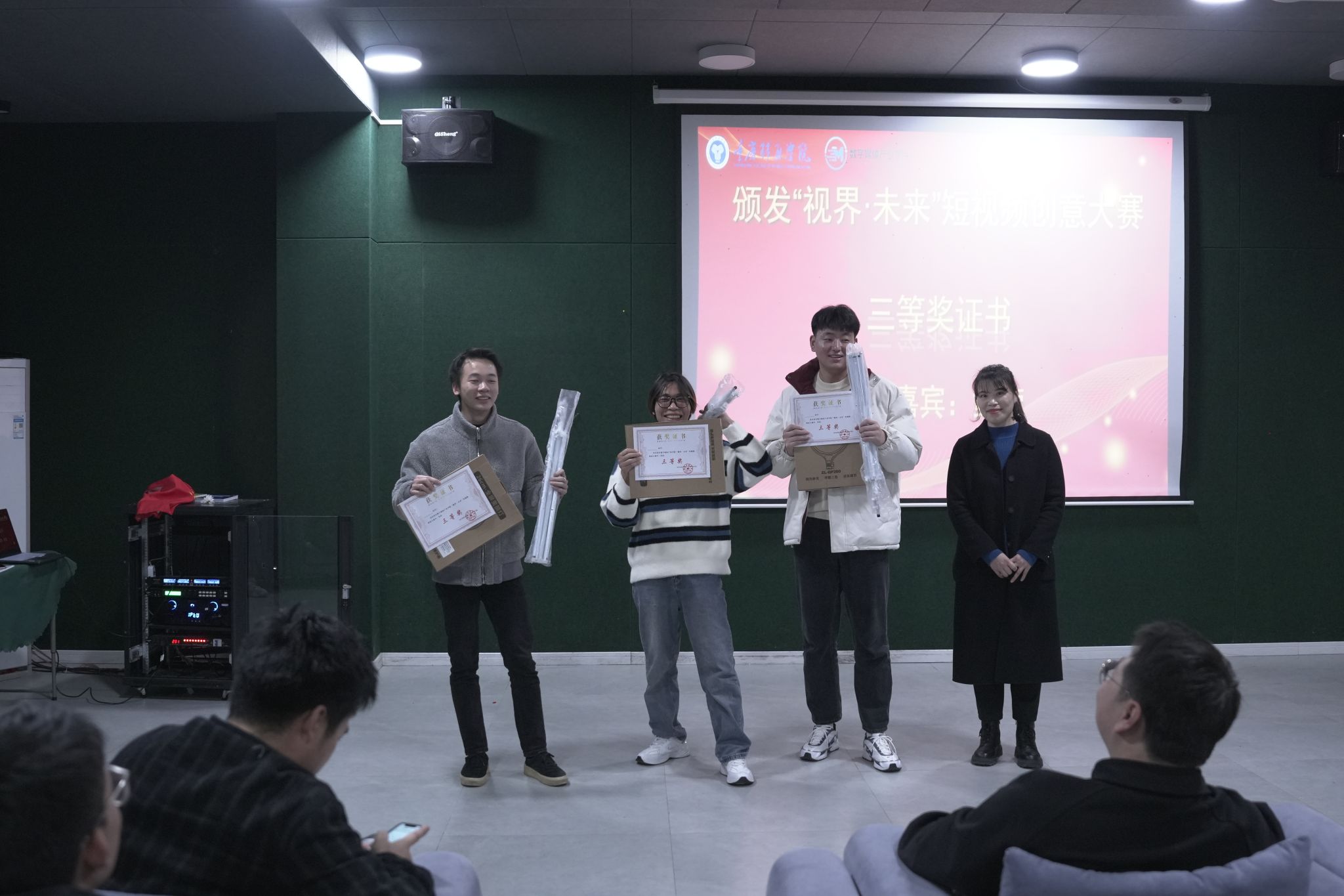 最终,经过激烈的角逐和公正的评判,主持人宣布了获奖名单。一等奖由《梦想不会过期》的刘鑫、刘冰组获得;二等奖由《梦想与现实》的刘扬、梁梦福、和亦帆组摘得;三等奖则由潘德雲、程佳雯、杨成鸿组获得。获奖队伍的代表们纷纷上台发表了获奖感言,表达了对团队的支持和感谢,并分享了创作过程中的点滴故事。