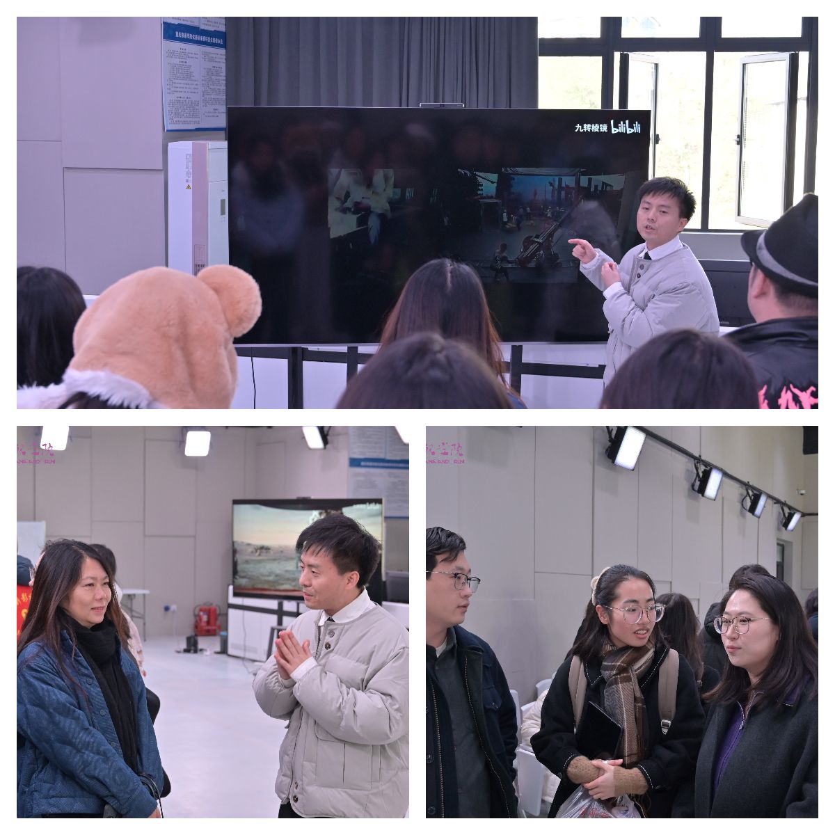 重庆师范大学文学院的老师们对学院在艺术专业建设过程中求实务本、关注基础实验室建设的举措给予了高度评价。秦琦琅老师在交流中风趣地表示,重庆师范大学文学院一行的到访不仅让寒冷的重庆变得温暖如春,更让双方在实验室建设、产教融合、双师建设等方面有了更加深入的了解。同学们还在现场亲身体验了LED虚拟拍摄的影像结合技术,仿佛置身于一场影视制作与数字虚拟仿真拍摄技术碰撞的视觉盛宴之中,深受震撼和启发。
