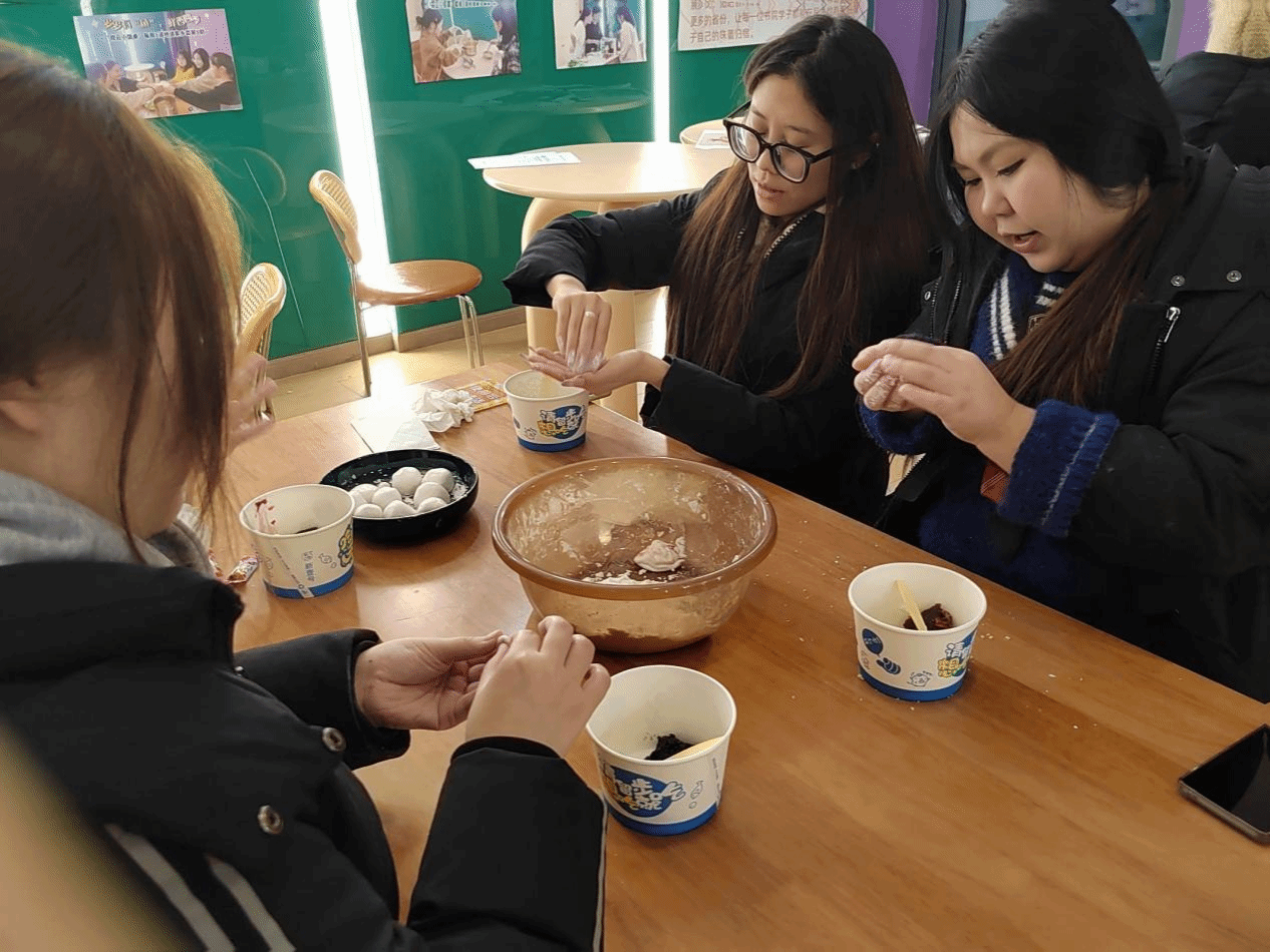 活动当日,社团成员和同学们便早早地开始了准备工作。气氛温暖和谐,大家分工明确,有的忙着调制汤圆馅料,还有的精心布置活动场地,将现场装点得充满节日氛围。随着活动的正式开始,成员们纷纷大显身手,糯米粉在他们手中逐渐变成了软糯的面团,随后被包上各种美味馅料,一颗颗圆润可爱的汤圆便成型了。