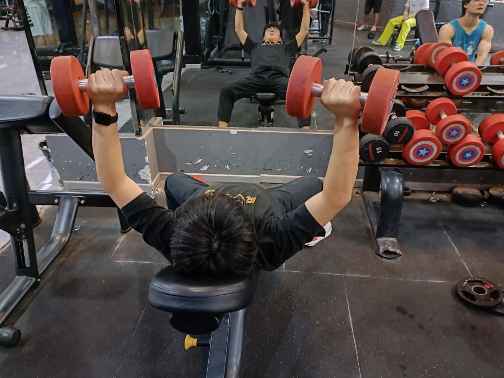 疫情原因不能到健身房,傀儡般的网课生活也让他十分非常焦虑,但是他并没有摆烂,在宿舍里哑铃、臂力器应有尽有,在keep软件上也有自己严格的健身计划。
