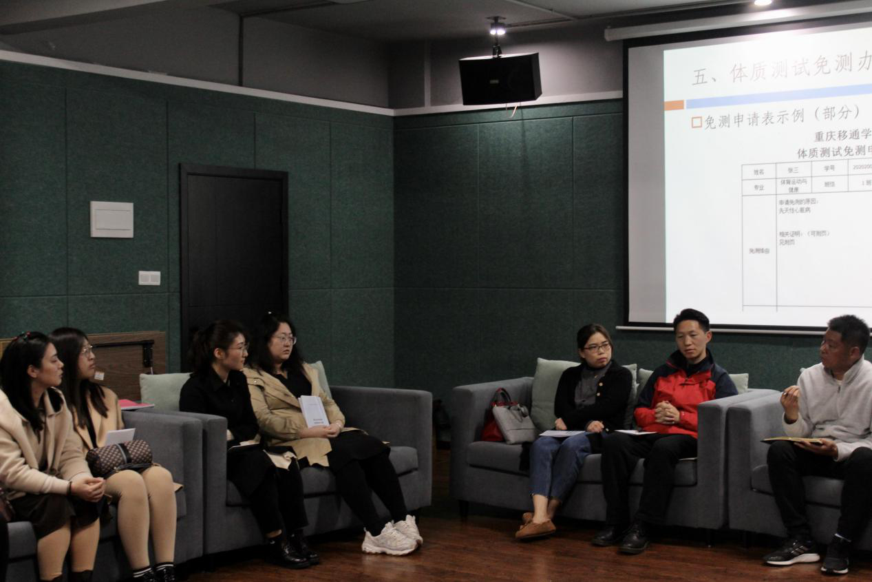 3月10日下午,竞技体育中心于爱莲书院多功能影音室开展了主题为“健康·体测·面对面”的首届体育沙龙。邀请了学校九大学院的辅导员代表参加,艺术传媒学院李克伟副院长与中德应用技术学院侯宇晶副院长更是亲临现场与大家分享交流,沙龙由竞技体育中心刘玉林主任主持。