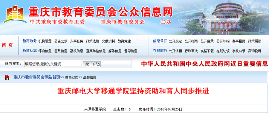 2015-2016学年,重庆邮电大学移通学院发放各类奖助学金、临时困难补助、勤工助学岗位补贴、求职考研补贴、国际交流补贴和助学贷款等共计4431万元。将资助帮扶和培养教育紧密结合,强化资助工作育人导向,积极引导和帮助家庭经济困难学生成长成才。