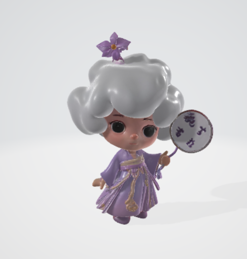 远景学院刘懿莹与信息安全学院曾源创新运用AI技术创作:基于"汉服""萌态""文化自信"等核心要素,通过生成式AI设计具有非遗花竹帽、桔梗紫长袍的新版"云仔"形象。借助Stable Diffusion工具进行风格迁移训练,使IP既保留传统纹样精髓,又呈现数字化视觉特征以及Blender的参数化建模系统对形体比例进行优化,动态捕捉软件记录面部微表情模型,突破平面创作的维度限制。