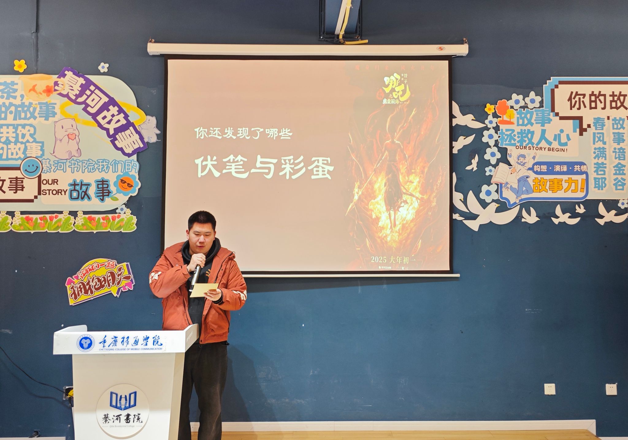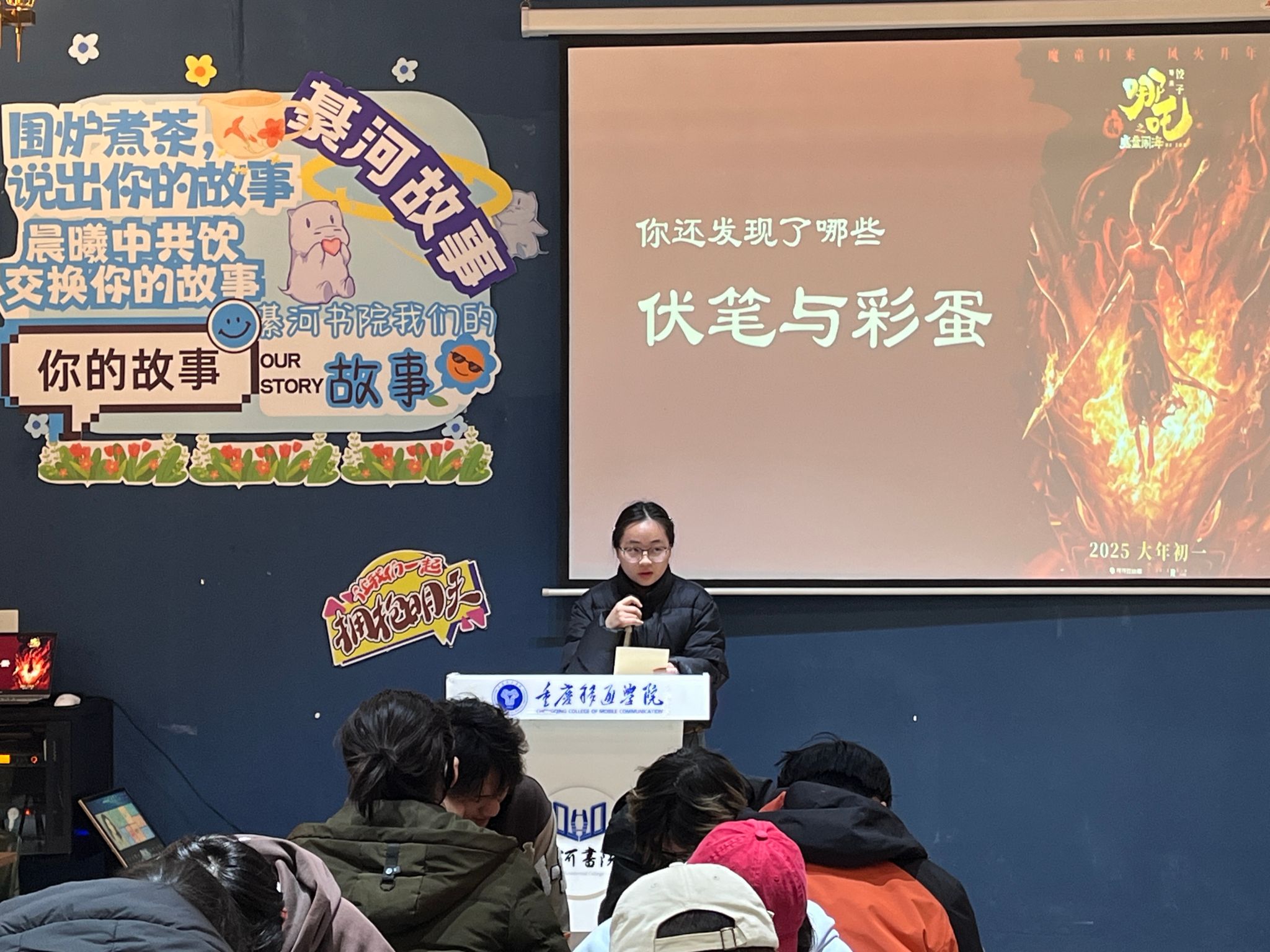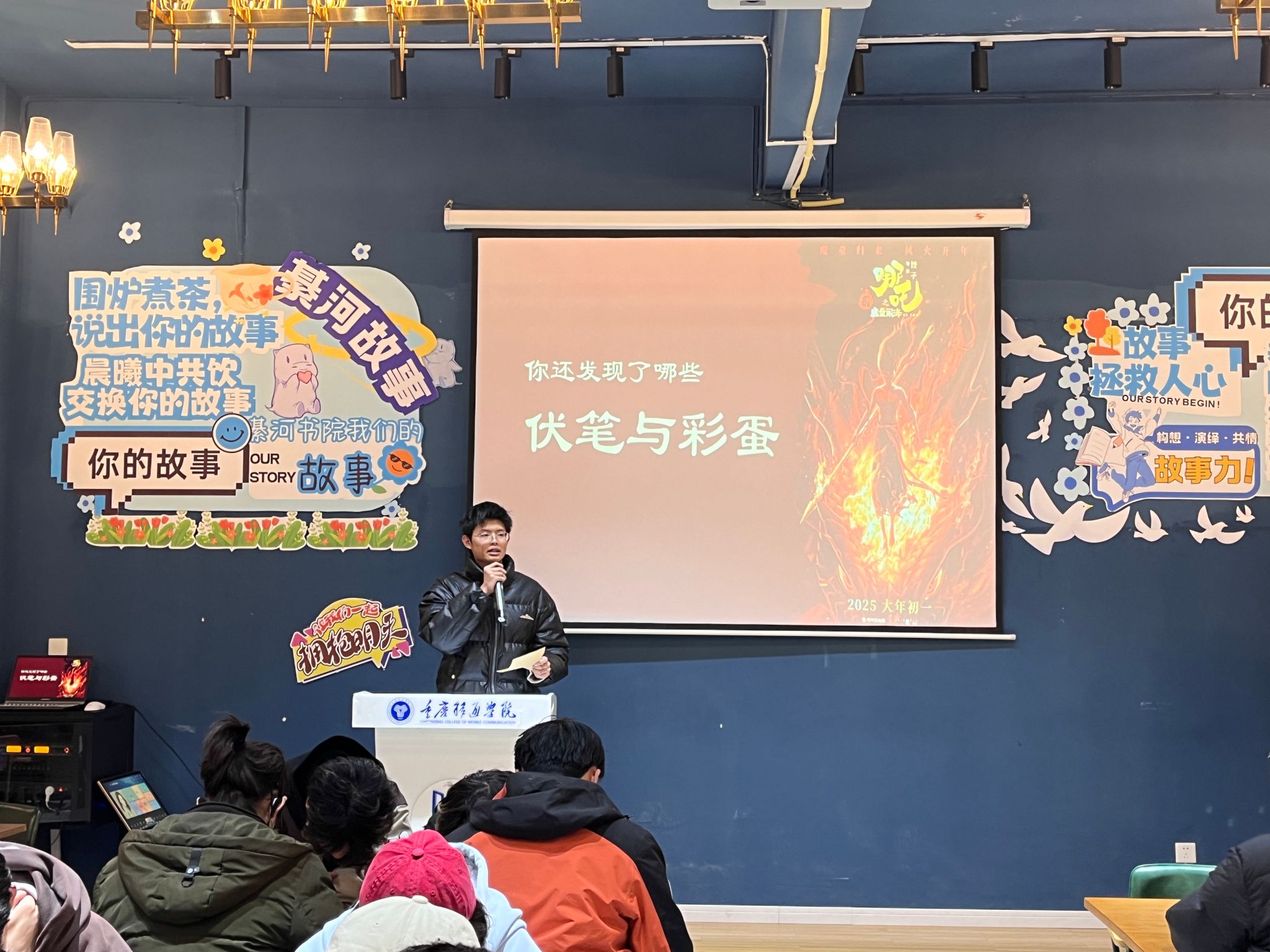 助我破谜,给小爷我破!一则文章,一篇电影,一段剧情,一次经历,故事的内容或平淡温罄,或反转强烈,于细节处窥见不一样的故事脉络走向。綦河书院立足于“故事力“培养体系,于2月26日在东篱·故事茶馆举办了故事伏笔研究所——谈谈哪吒2中的隐藏彩蛋,兼具哪吒勇猛与敖丙智慧的书院学子,在探讨哪吒2剧情彩蛋中锻炼结构化思维,于分享中增进彼此之间的情感交流。