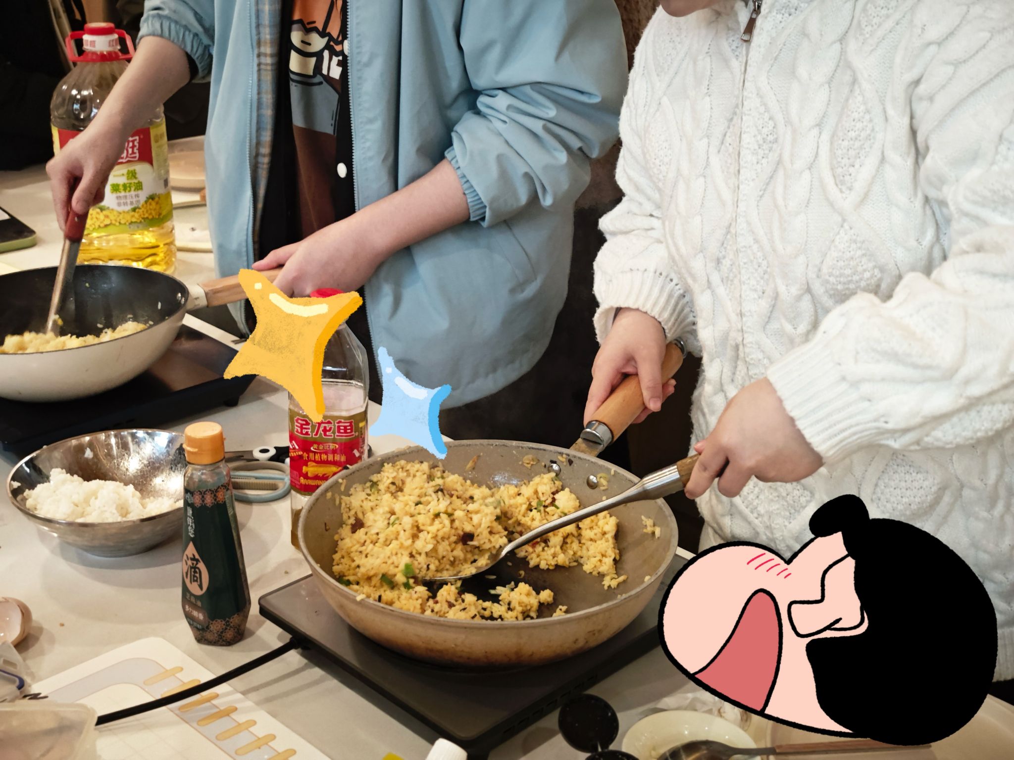 书院内,一群热爱生活的学子,其中不少人是二次元的忠实粉丝,心中对动漫怀揣着炽热且纯粹的情感,也有不少学子痴迷于烹饪,渴望在锅碗瓢盆间施展身手。活动现场,两种热爱奇妙交织,大家激动分享动漫名场面,随着三份"会发光的料理"惊艳出炉,相互品尝着亲手制作的蛋炒饭,热烈探讨烹饪技巧,思维的火花不断碰撞,在欢声笑语中,自然而然地建立起真挚的友谊。