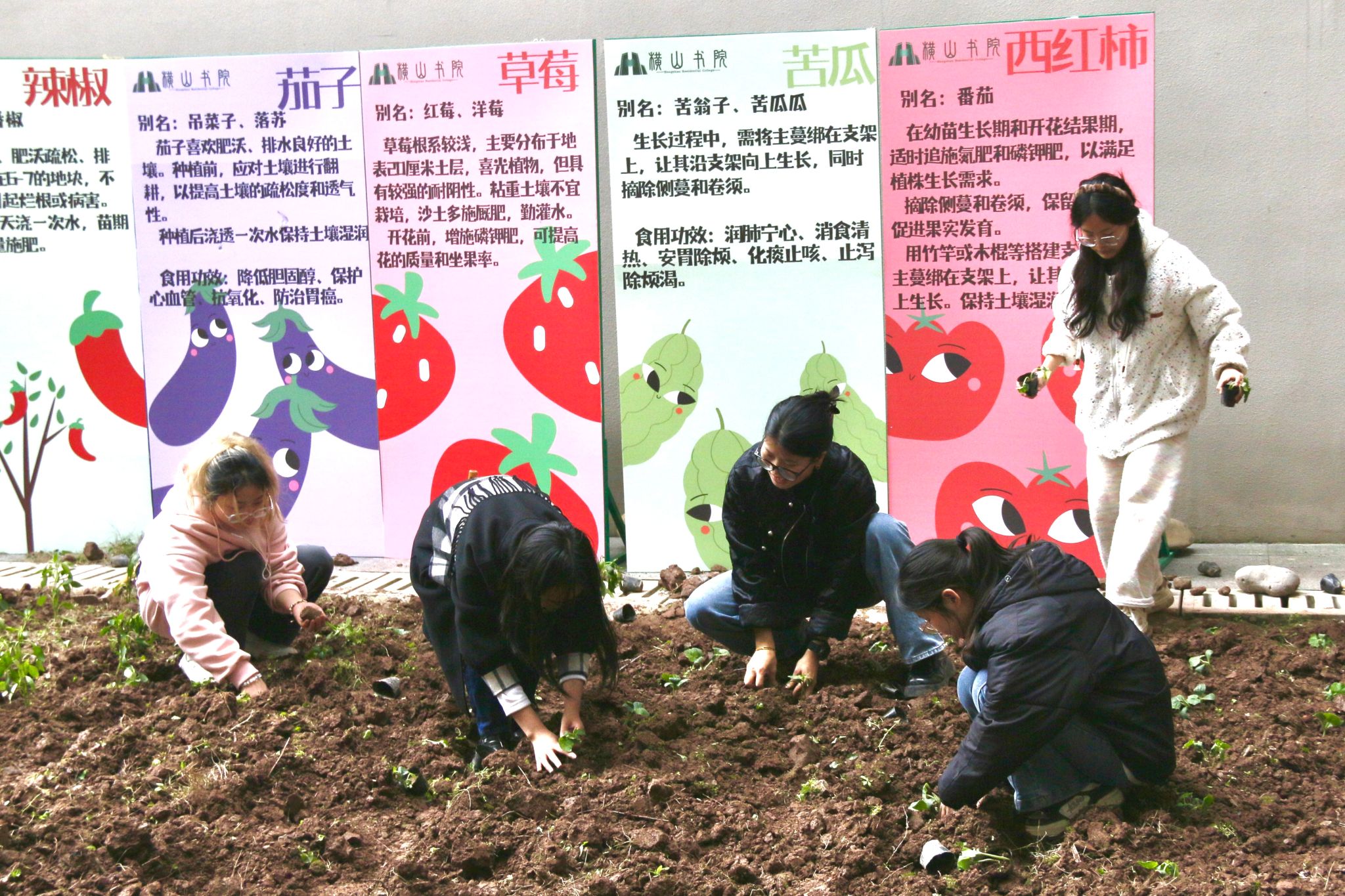 以“书”为媒,以“菜”为介,将理论知识与农耕实践完美结合。为传递绿色生活和女性独立自强的理念,深入落实书院实践育人举措。值此3月7日女生节的契机,横山书院于3月7日下午14:00联动基建后勤处在书院空地开展了一场别开生面的“书菜市场”特别季—蔬菜播种体验活动。通过亲手播种、蔬菜培育,带领横山仙女们感受了劳动的乐趣,这场特别的体验,不仅为女生节增添了独特的文化内涵,也让学子们在劳动中收获了成长。