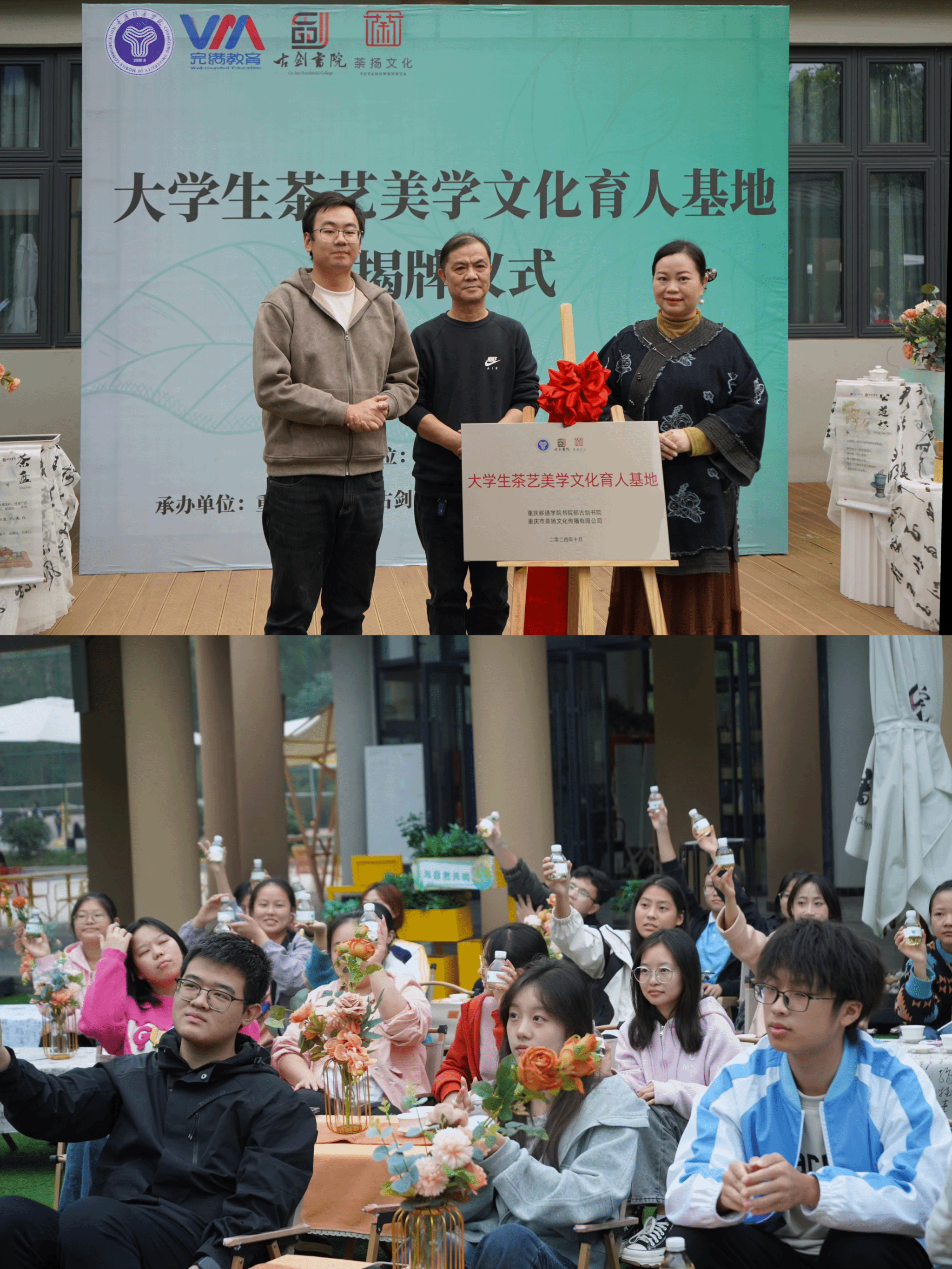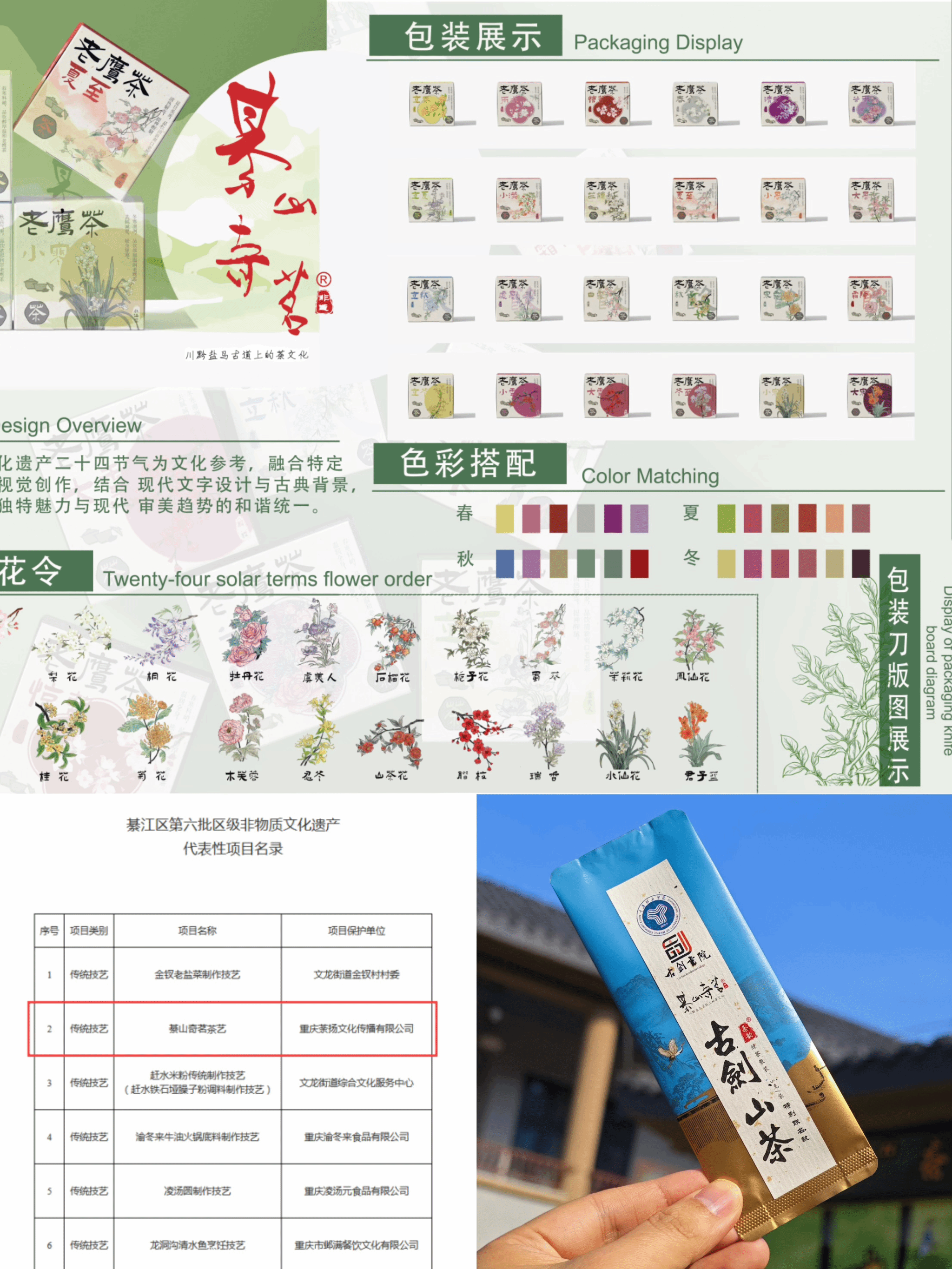 2024年4月举办谷雨辞春·与君共聚四月天师生集体生日会时,古剑书院与綦山奇茗茶艺非遗传承人徐露老师结下了深厚的友谊,开始探寻茶文化在高校教育发展的可能性。在书院与綦山奇茗茶艺项目的融合推进中,主要从三个方向实现协同育人:一是阵地实践,古剑书院于2024年11月与重庆市荼扬文化传播有限公司签订合作协议,通过建立大学生茶艺美学文化育人基地,并搭建荼扬茶艺工坊,实现课程的持续性、专业性和普适性,为茶艺的学习与发展提供基础保障。二是活动实践,主要为校内的专业知识课程的集中式教学和校外的茶山采茶户外实践两部分。目前工坊正式运营5个月,已开展谷雨采茶记、小雪茶话会等相关活动共计6次,覆盖学生近千名。三是品牌赛事实践,在阵地搭建完毕后,古剑书院尝试性地将綦山奇茗品牌与相关赛事进行结合,经与徐露老师进行探讨,由书院教师带领学生团队,以綦山奇茗为品牌核心参加新加坡全球品牌策划大赛,目前产出相关包装设计二十四节气系列、赛博朋克系列等,相关IP形象设计雾都兜兜以及衍生的相关文创周边,且正在不断优化品牌策划,冲击校赛决赛。