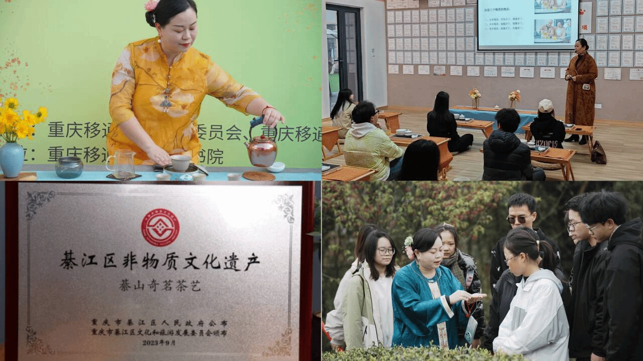 綦山奇茗茶艺,于2023年9月入选重庆市綦江区第六批区级非物质文化遗产代表性项目。传承人徐露在传承祖传茶艺的基础上,结合綦江实际,充分利用綦江老茶树资源,推陈出新,创新煮茶、泡茶技法,形成了独特的綦江徐氏茶艺新技术。
