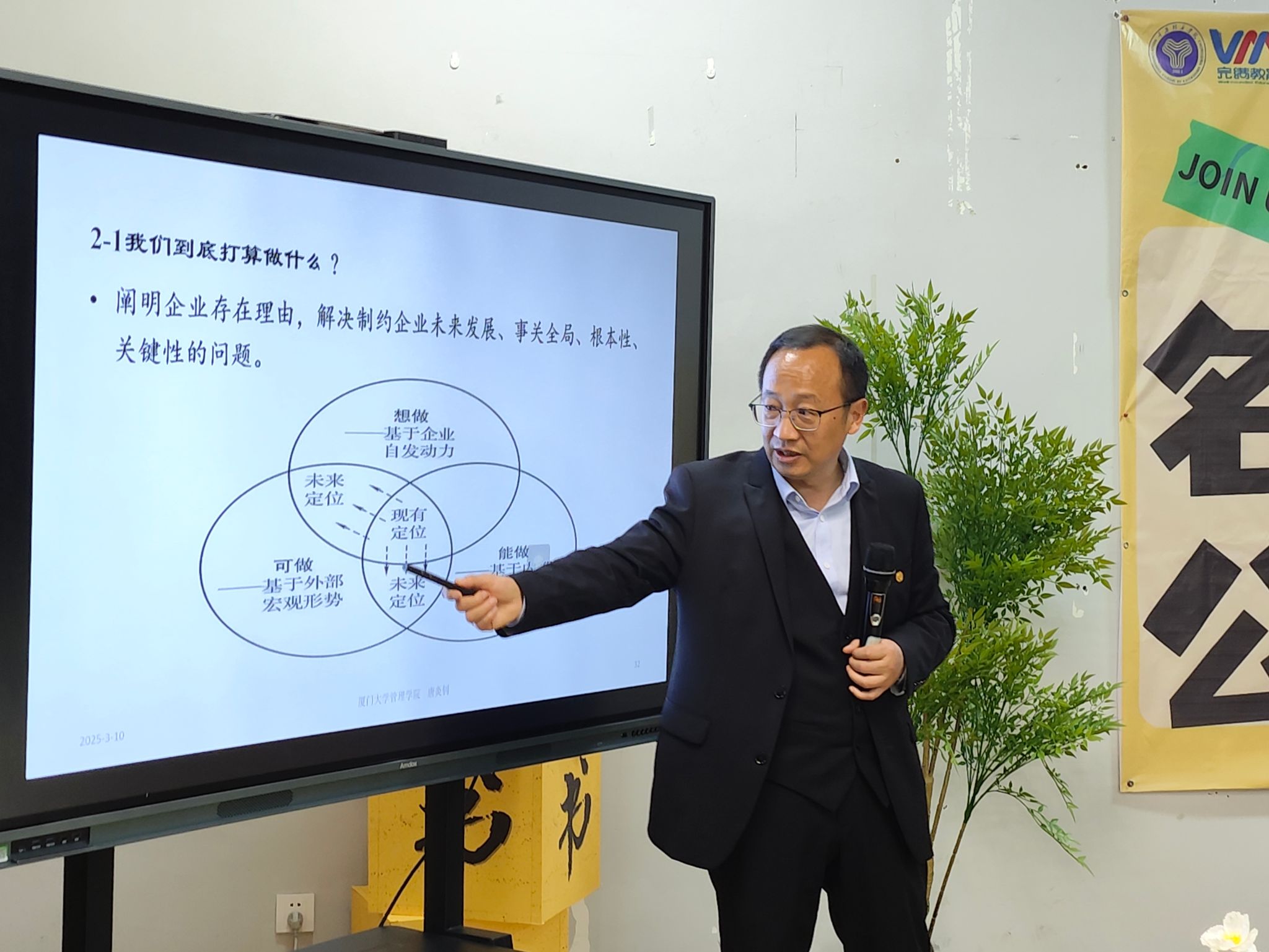 讲座伊始,唐教授以“管理者的脑袋想什么?”这一的问题切入,引导大家思考管理的本质。他指出,在VUCA时代(即易变性、不确定性、复杂性、模糊性),管理者必须具备前瞻性思维,用长远的愿景来应对易变性,用对现实的理解力来应对不确定性,用深刻的洞察力来应对复杂性,用敏捷协同来应对模糊性,并以华为、阿里巴巴等企业为例,阐述了管理者如何在复杂多变的环境中保持战略定力,带领团队走向成功。唐教授提到,华为的愿景是“构建万物互联的智能世界”,这一愿景不仅为华为指明了方向,也为全体员工提供了动力,他引用任正非的话说:“方向大致正确,组织充满活力”,也说明了领导者战略的重要性。