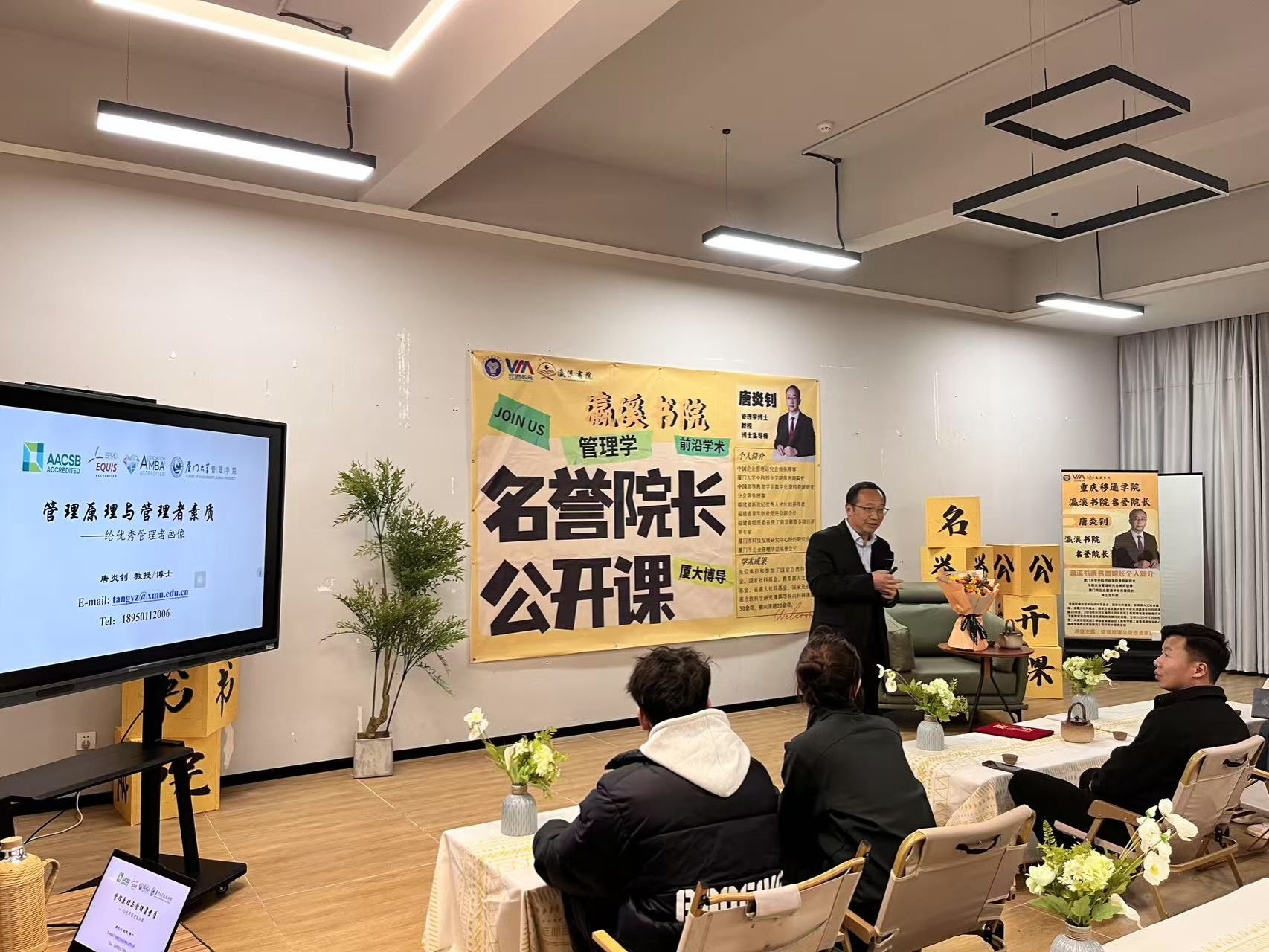 随后,唐炎钊院长为师生带来了一场题为“管理原理与管理者素质——给优秀管理者画像”的精品公开课,探讨优秀管理者应具备的素质,为未来管理人才的培养指明方向。