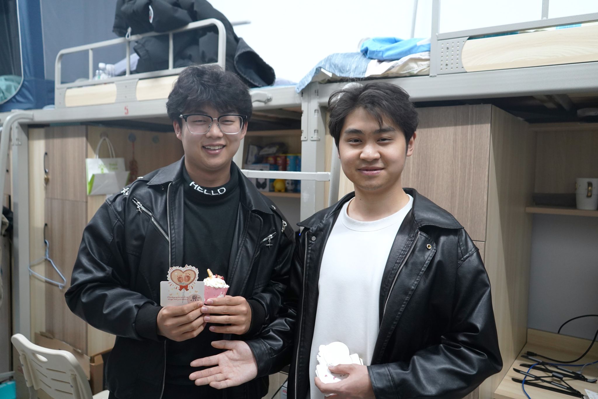 除了贺卡,每位庆祝生日的同学还收到了一块精美的小蛋糕。当导师们手捧蛋糕,轻柔地敲响寝室门的那一刻,同学们的脸上从惊讶转为瞬间绽放的笑容。许多同学刚接过蛋糕,便急不可待地与室友分享这份甜蜜。“6月份生日的有吗?”“10月份的呢?”同学们好奇的询问声此起彼伏,这份蛋糕与祝福成为见证同窗情谊与书院关怀的特别符号。