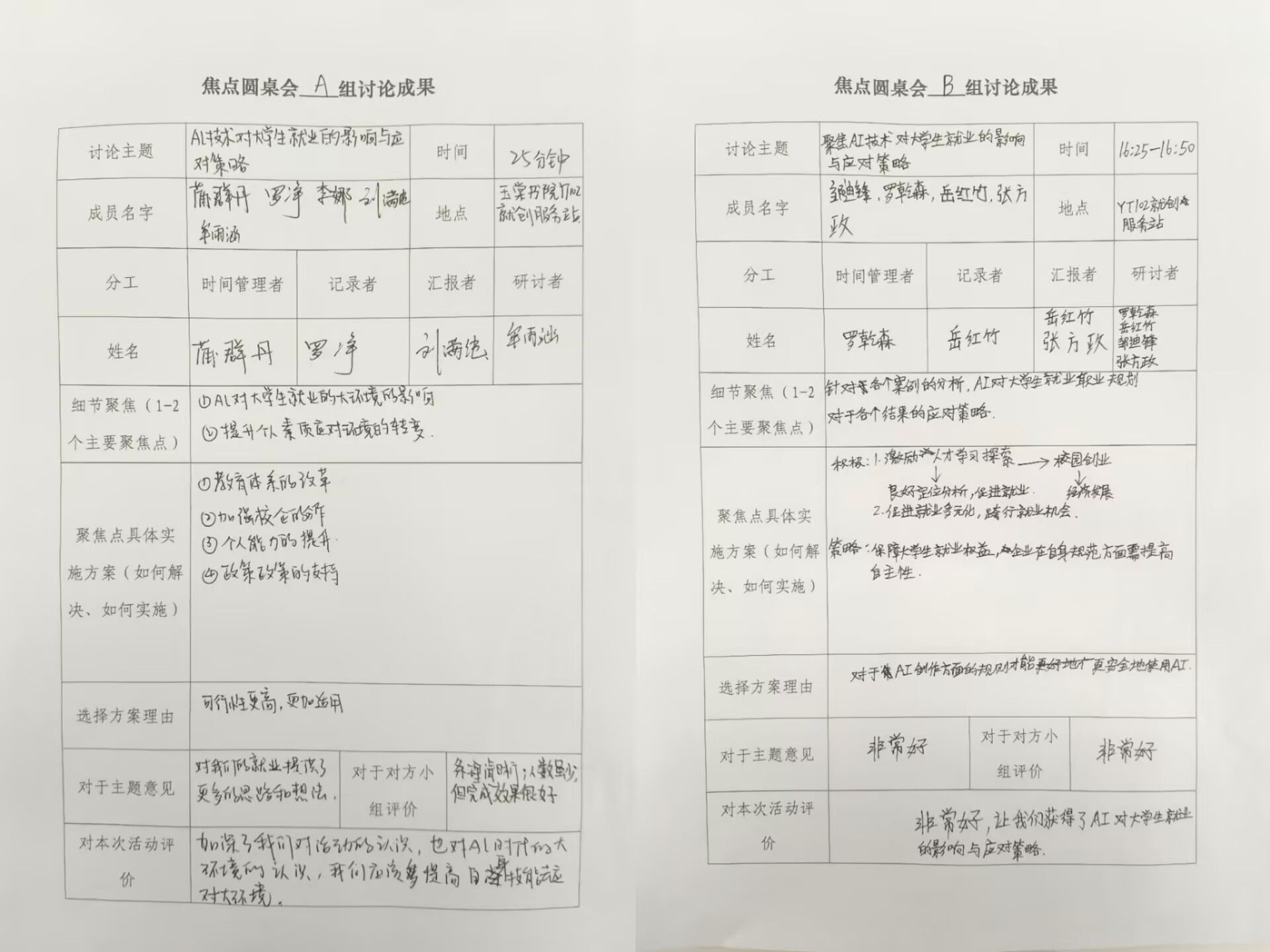 活动现场气氛热烈,同学们踊跃发言,展现出对自身职业发展的高度关注和积极探索的精神。在讨论过程中,大家思维碰撞,从不同角度剖析AI技术对大学生就业的影响。A组同学率先登场,他们指出AI技术创造了如AI算法工程师、数据标注员、AI产品经理等新兴岗位,为大学生开辟了新的就业方向。但同时,他们也指出,这些新兴岗位对技术能力和知识储备要求极高,大学生需要不断学习和提升自己,才能满足岗位需求。