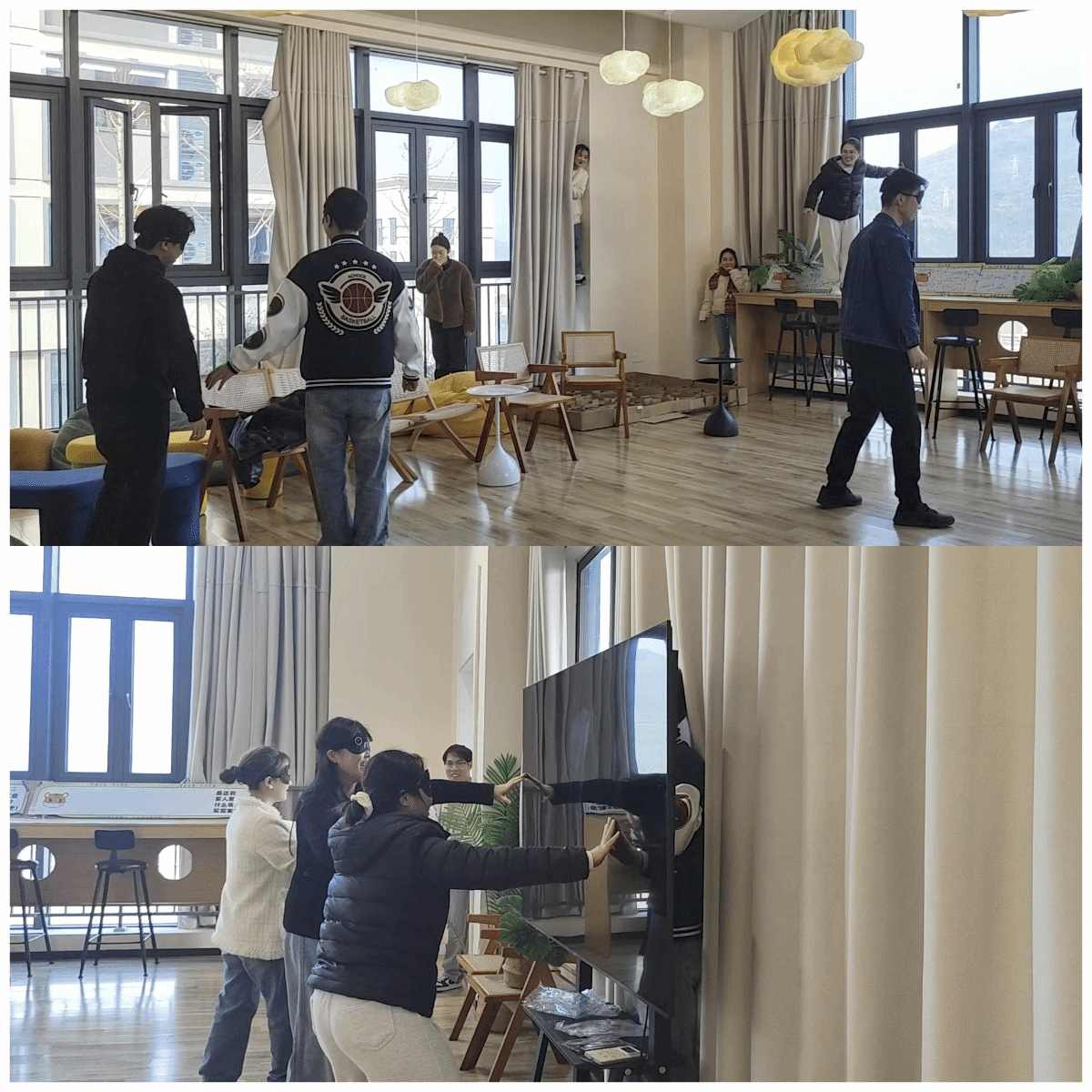 在第九期活动中,由熊文文导师带领同学们开启了一场暗夜猎杀与智慧突围的较量。游戏中,扮演“僵尸”的同学们蒙上双眼,仅凭听觉、触觉在房间内搜寻“人类”。原本慵懒的云里发呆室瞬间被按下静音键,同学们们屏息凝神,寻找藏匿处,有的蜷缩在空调后,有的紧贴电视屏幕,还有的藏身于窗帘褶皱的阴影中。导师在一旁时而出声干扰,时而播报最新战况,鼓励同学们不仅要保持高度警惕,更要发挥智慧和团队协作能力。同学们积极响应,纷纷出谋划策,共同制定逃脱策略。在这场紧张刺激的较量中,大家不仅锻炼了逻辑思维和判断能力,更在师生互动中学会了如何在复杂多变的环境中保持冷静与理智,共同应对挑战。