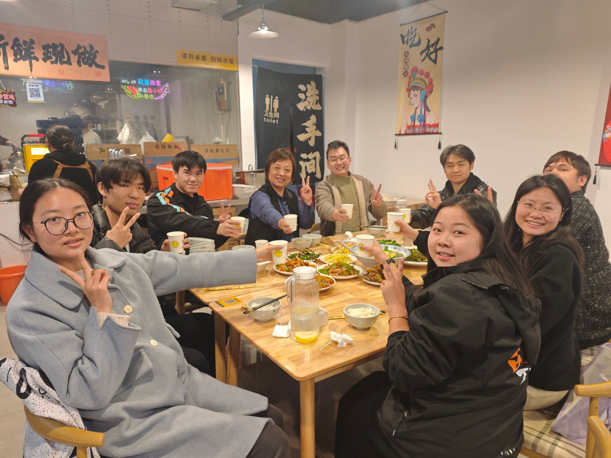 这次的研讨沙龙在同学们的讨论声中接近尾声,课后程大为教授与古剑书院导师团队以及同学们围坐一堂,共享美食、畅谈交流。在场学生抓住这一宝贵机会,围绕学业困惑、职业规划等话题踊跃提问。田盛中同学问道:“针对有考研计划的同学,在专业和院校的选择上应该怎么判断?”李志远同学则问道:“毕业后直接就业的同学又该选择什么样的行业才能成功?”程教授认真倾听每位同学的发言,并耐心细致地给予解答与建议,比如针对自己所学专业和目前国家发展的趋势相结合去选择相应的行业,不要盲目跟风,如果做不到0-1的创造性转化,那就脚踏实地做好从1-100的过程。此外古剑书院勤工邓立伟同学提到自己通过假期做义工实现用脚步丈量祖国土地的经历,程教授予以极高的肯定,同时为邓同学提供了开辟义工短视频赛道的新思路等等。共膳结束后,学生们表示,这次交流收获颇丰,既加深了对就业形势的理解,也帮助学生明晰了方向、拓宽了思路。更激发了努力学习、积极进取的动力。