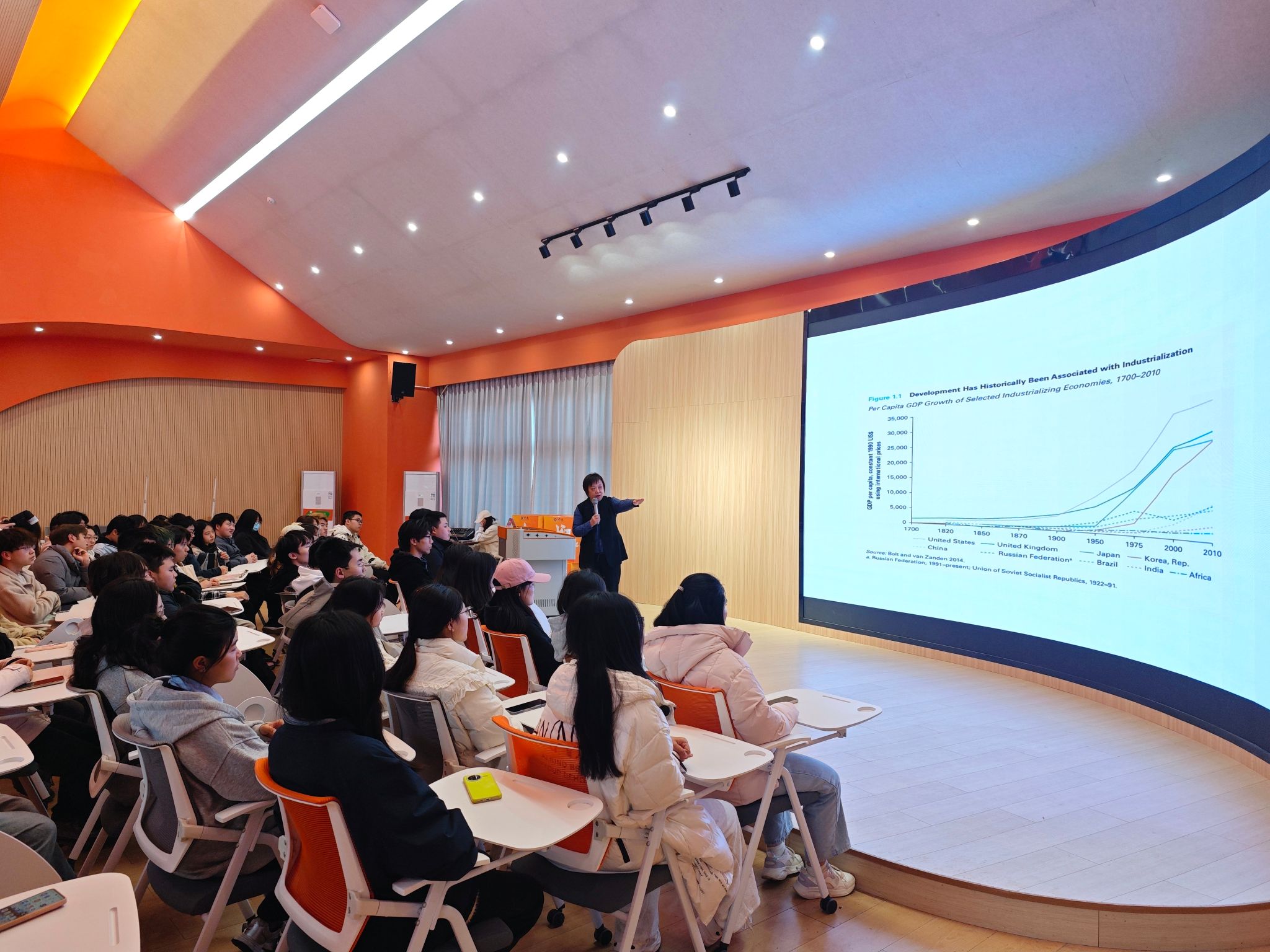 全球价值链的产生,使得全球化的进程极大地加快,并为生产力与生产关系赋予了新的内涵。程大为教授用一张“20世纪冷战结束后全球价值链发展”图表向同学们阐释了这一变化:“在这种价值链之下,研发、掌握销售的人挣的钱多,而生产的人却挣钱很少。”这一现象表明,在全球化背景下,知识和技术的重要性日益凸显。全球价值链的兴起促使我们重新认识生产力与生产关系——在全球化背景下,知识与技术的重要性显著提升。这一变化深刻反映出,技术研发与全球协作正成为驱动经济发展的核心动力。
