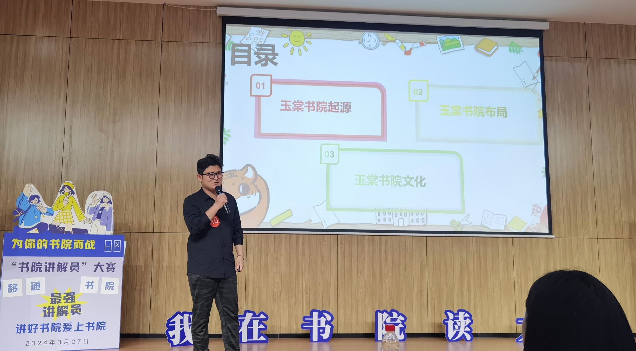 在玉棠书院修炼一年之后,我变成一个“社牛”,不仅练就了过人的胆识,每天还和同学们“斗智斗勇”!我凭借“三寸不烂之舌”和优异的服务态度,让玉棠书院的师生们都对我竖起大拇指!与人交谈成了我的“快乐源泉”!我学会如何统筹活动、管理物资,协调功能室的使用时间,解决多媒体出现的“Bug”,确保玉棠书院功能室的一切井然有序。让我自豪的是,我成为玉棠书院的“文化代言人”。在《我的书院》讲解员比赛中,我凭借“三寸不烂之舌”拿下第二名,成功解锁“讲解员”成就。站在舞台上,看着台下观众们的掌声,我感受到“付出终有回报”的快乐。