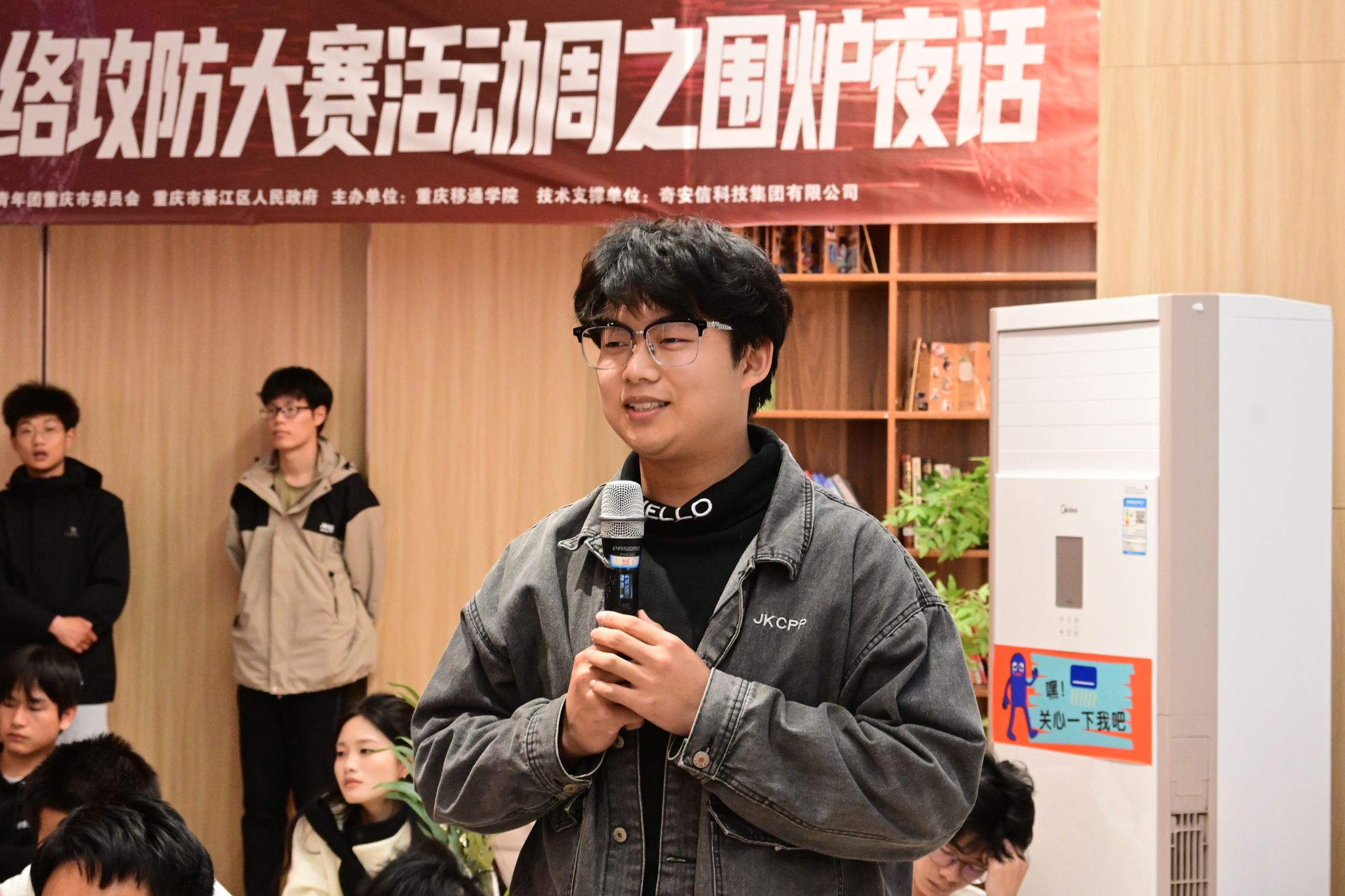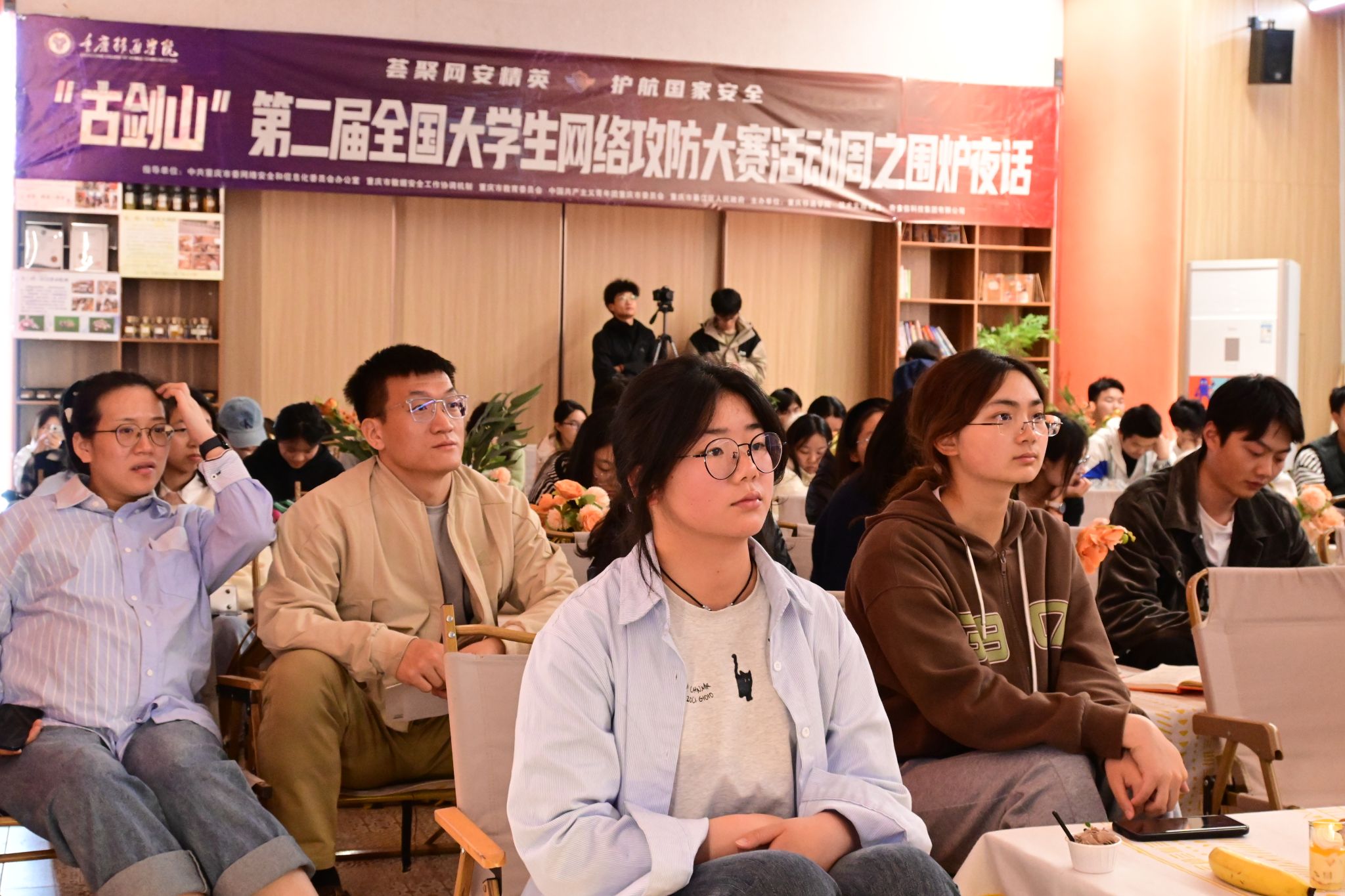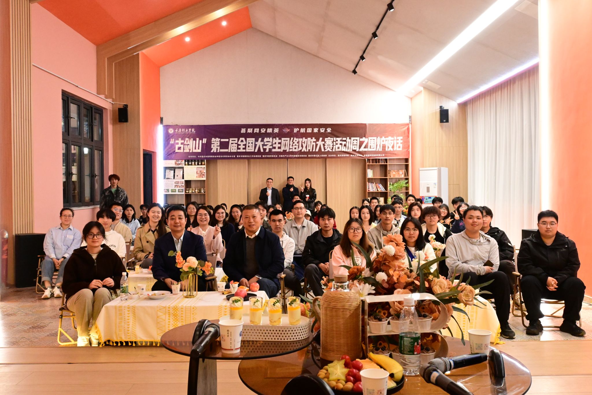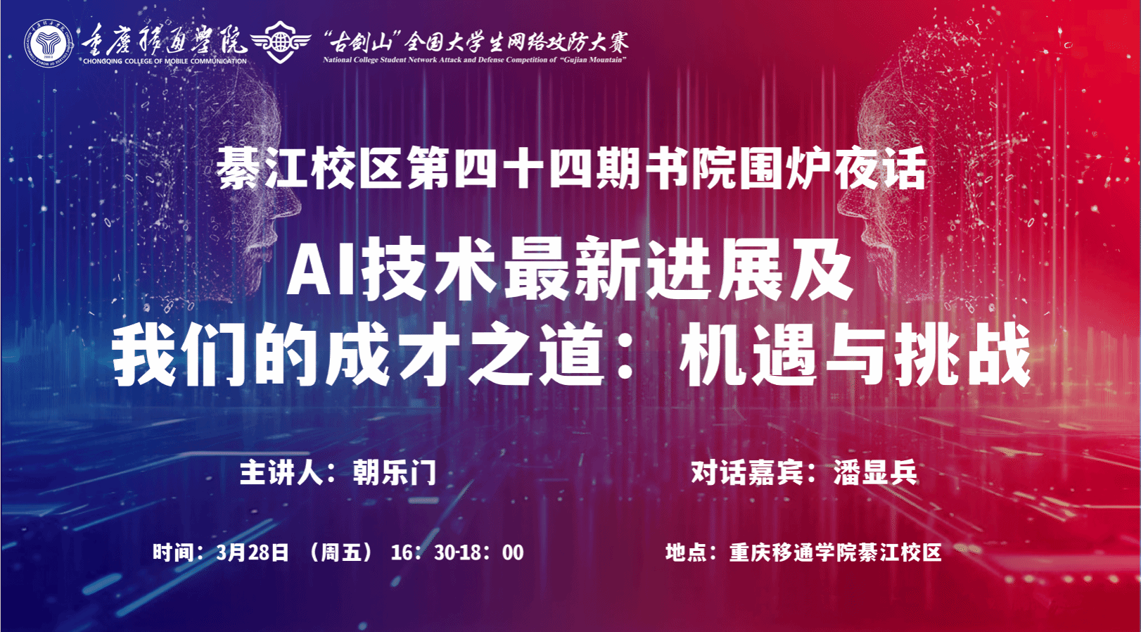适逢第二届全国"古剑山"大学生网络安全攻防精英赛举办之际,3月28日在古剑书院湛卢·剑云阁举办第44期书院围炉夜话,此次活动特邀中国人民大学朝乐门教授作为主讲嘉宾,重庆移通学院大数据学院院长潘显兵教授,书院部部长曹玉姣作为对话嘉宾。活动以《AI技术最新进展及我们的成才之道:机遇与挑战》为主题,师生共同探讨AI技术的前沿发展及其对个人成长的影响,现场氛围热烈,思想碰撞不断。
