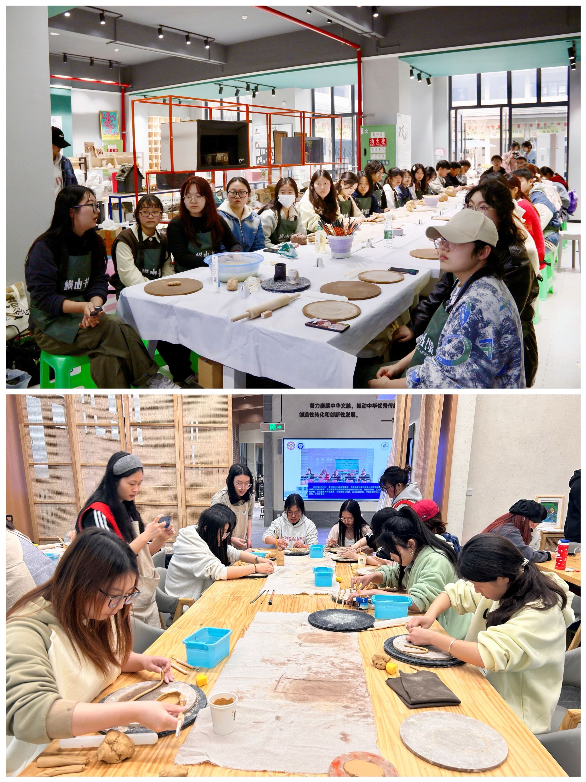 为深化学生对陶瓷技艺的理解,提升学习兴趣与参与度,横山书院打破传统教学场地壁垒,创新教学形式,于3月19日、3月28日,组织学生在綦江非遗馆和书院陶艺文化基地分别开展了2场沉浸式陶艺实践活动,通过多元化、专业化的教学空间和创作环境中,让同学们能够全身心投入陶艺实践,完成更具专业水准的作品,在专业陶艺设备与非遗文化场景中,学生创作的专业度有了大大提升。这一教学实践有效提升了同学们对陶艺文化的热情程度,通过不同场地的文化熏陶,实现了技艺传承与文化浸润的双重教育目标。
