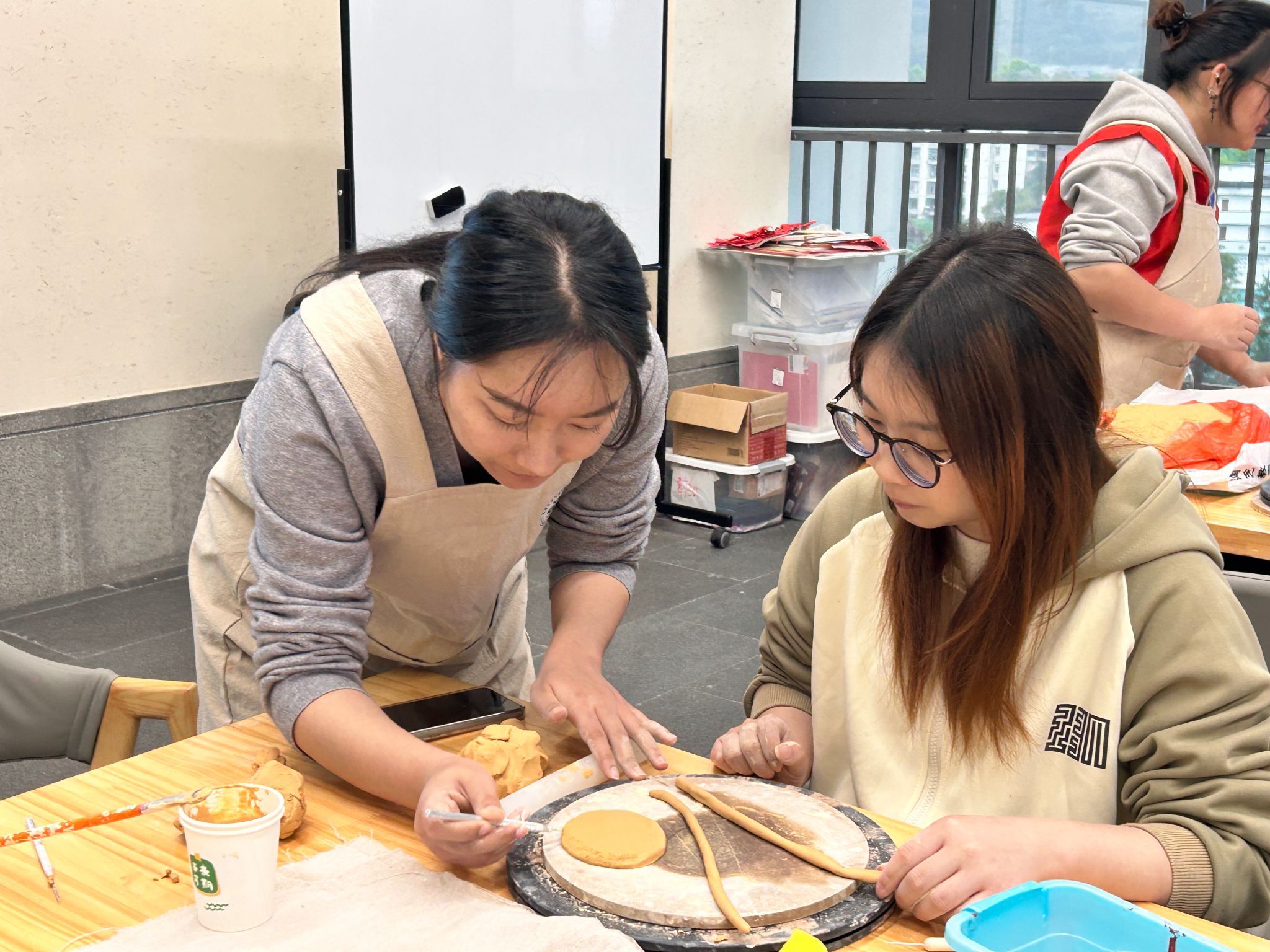 为进一步丰富师资力量,打造更加系统化的陶艺学习课程,特邀綦江非遗馆负责人张姣老师担任导师。在课程筹备期间,书院指导老师与张老师多次在綦江非遗馆及书院陶艺文化基地深入探讨课程优化方案。最终决定从"历史讲解+实地观摩+实践创作"的三个维度开展教学工作,通过系统讲解陶艺发展史、组织学生参观綦江非遗馆、指导学生创作实践等环节,让学生们沉浸式体验綦江地区独特的陶艺文化。这种跨越时空的教学方式,让学生们深入了解了传统工艺的精髓,更激发了他们对非物质文化遗产的传承热情。
