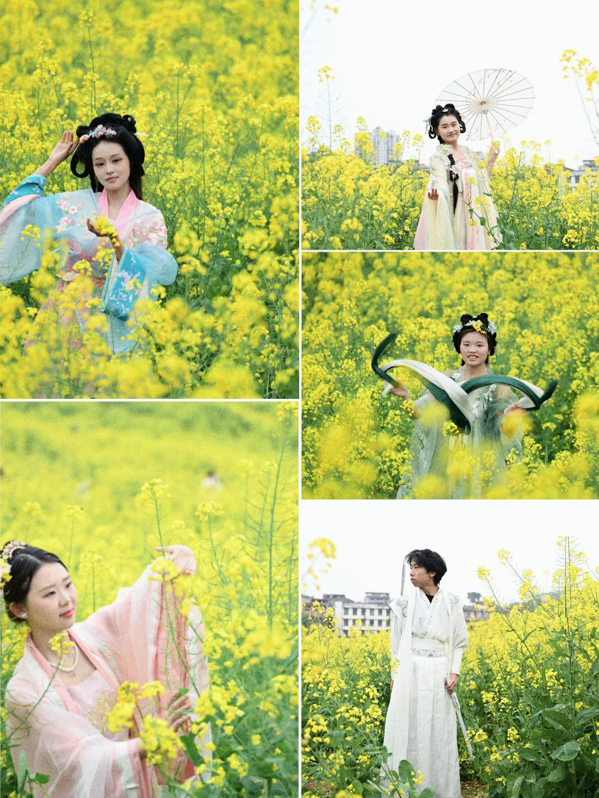 阳光穿过薄云,洒在连绵的花海上,每一朵油菜花都成了光的碎片,闪烁跳跃。百亩金色花海变身天然秀场,春日阳光造就天然补光灯,巴别塔动漫协会、X-model模特协会、华韵汉服协会等社团学子们组成超强模特天团,用镜头与光影在这片金色海洋中谱写青春的诗篇。动漫社成员们精心cosplay,在花田间演绎二次元与自然的完美融合;模特协会的同学们身着时尚服饰,在专业摄影师指导下完成多组时尚大片拍摄;汉服协会则带来传统服饰展演,衣袂飘飘间尽显中华文化之美。