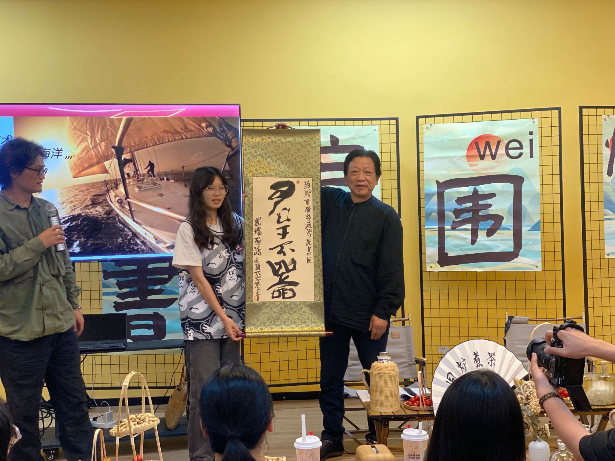 在夜谈结束后余教授结合夜谈主题“艺术,与谁共舞”题写了“君子不器”四字书法赠与瀛溪书院留予纪念。书院围炉夜话已经接近尾声,可是关于艺术的讨论还未停止。艺术让生活的意义得到更为广泛的延展,艺术慢慢的让学子身入、心入、情入,真切地在每个生活角落孕育艺术绽放之花。