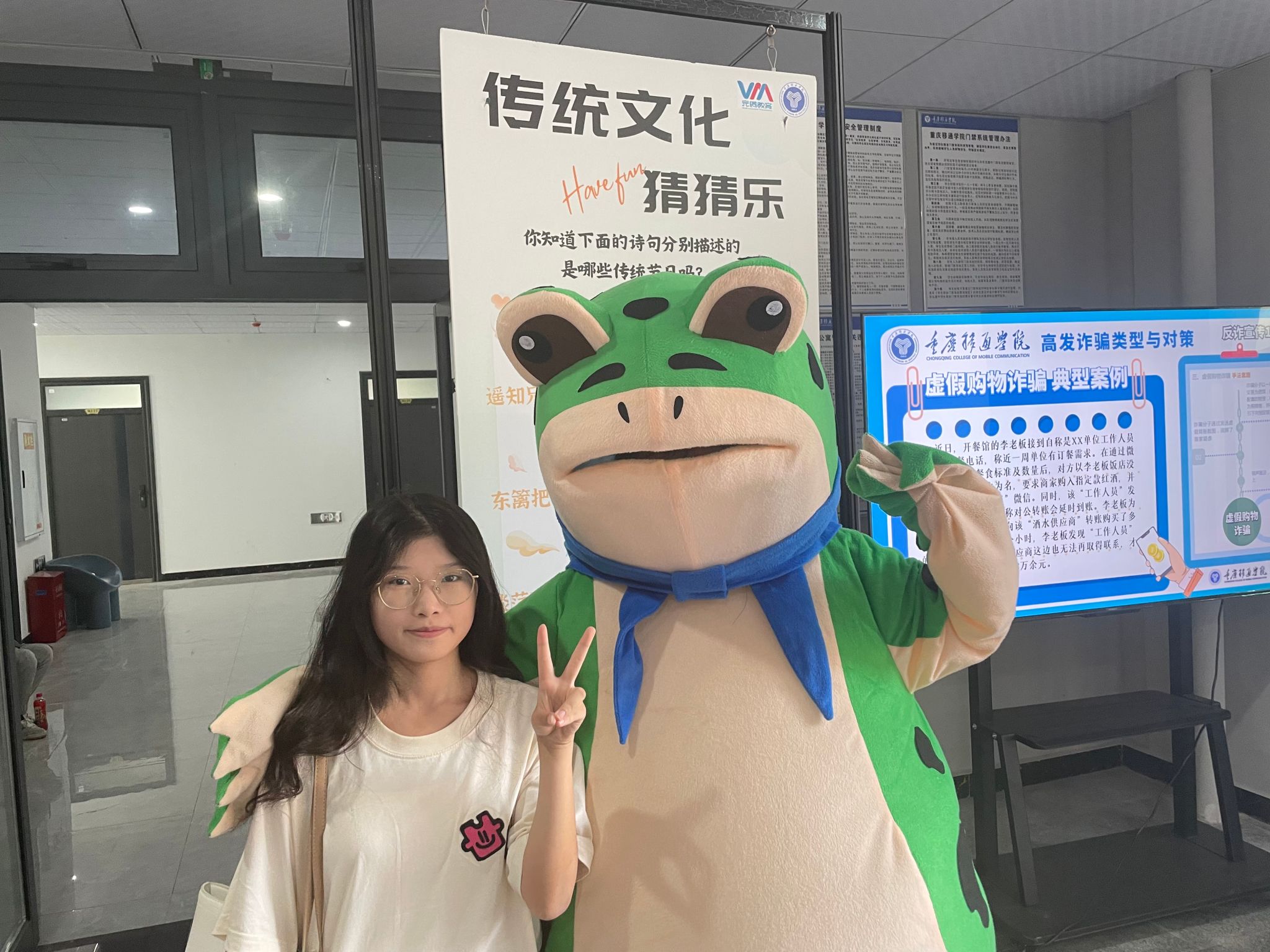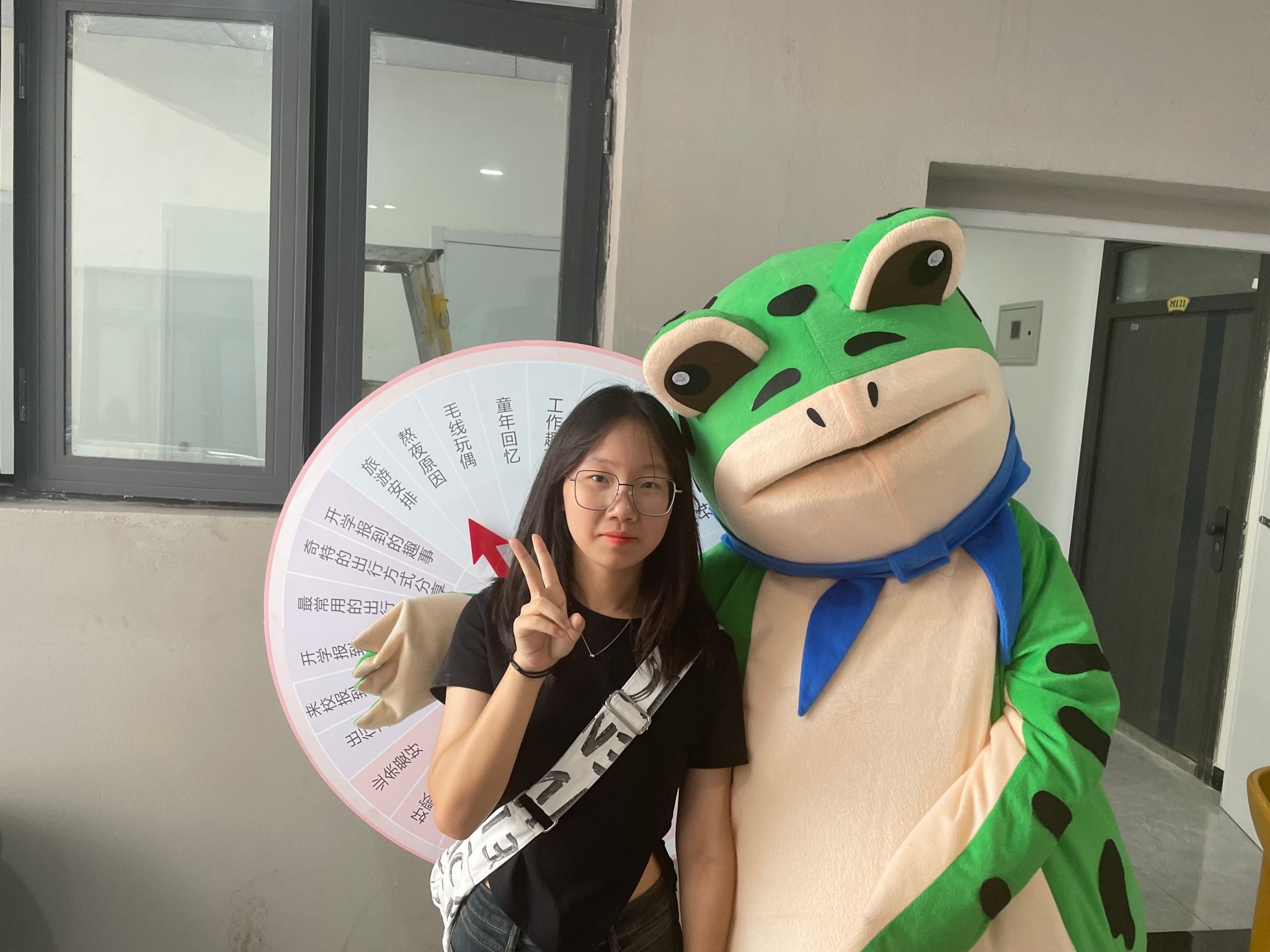 门头下面放置了书院迎新志愿者精心准备的拍照板、签名墙和互动转盘。随着新生们的到来,笑容能量站笑脸DIY逐渐被各具特色的笑脸填满,互动转盘和玩偶青蛙也吸引着新生们的视线,希望通过多元化的互动环节拉近新生之间的距离,在移通校园融洽的氛围中得到新的成长。