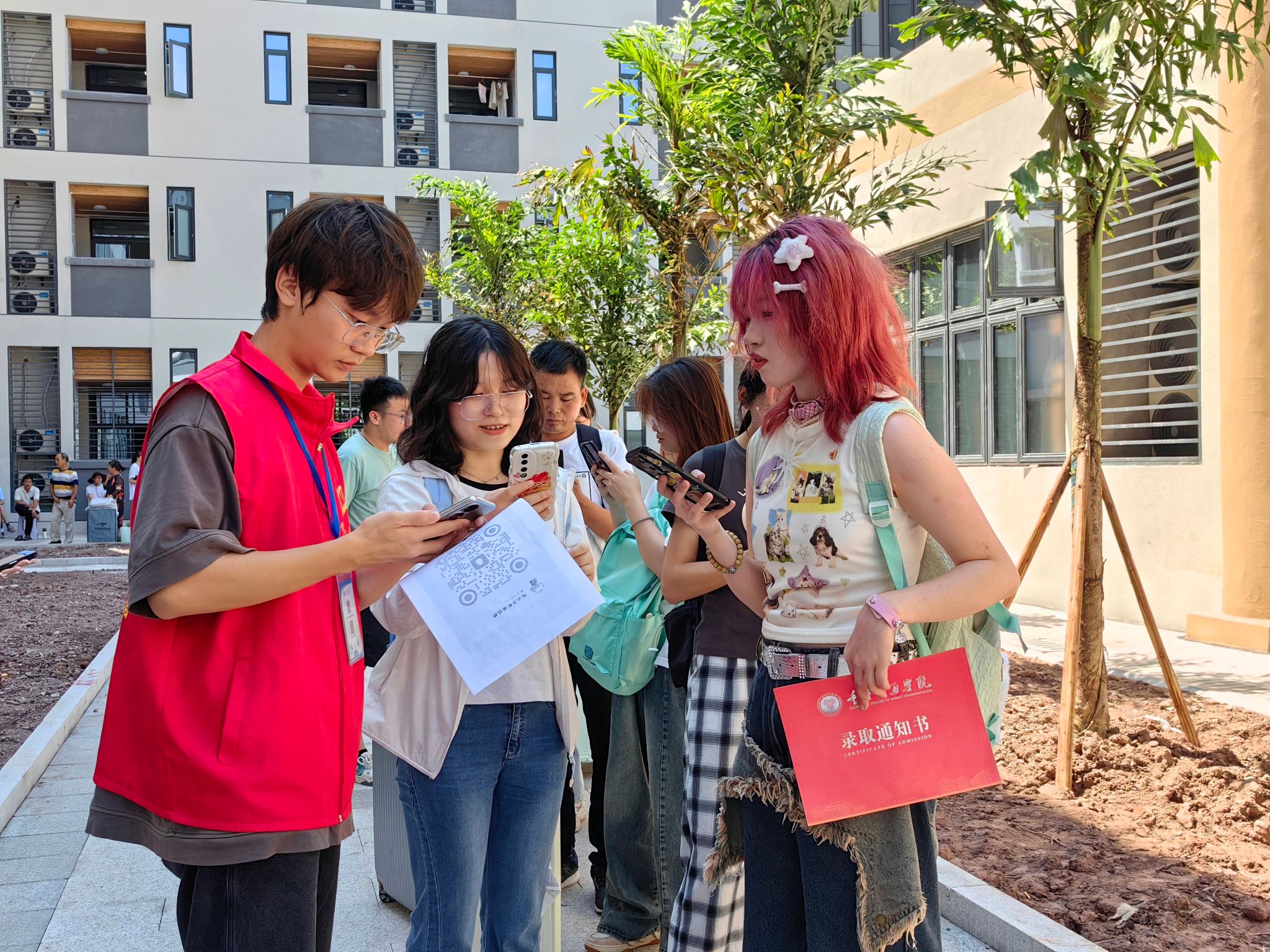 鲜艳的志愿红在阳光下熠熠生辉,志愿者们热情洋溢,为前来报到的新生细心指路,大数据学院、计算机学院、淬炼国际商学院、戏剧与影视学院等学院的新生报到点依次排开。迎新工作充分考虑新生需求,书院内部设置休息区,为新生与家长们营造了舒适便利的报到环境,在整个过程中竭力提升新生们的报到体验。