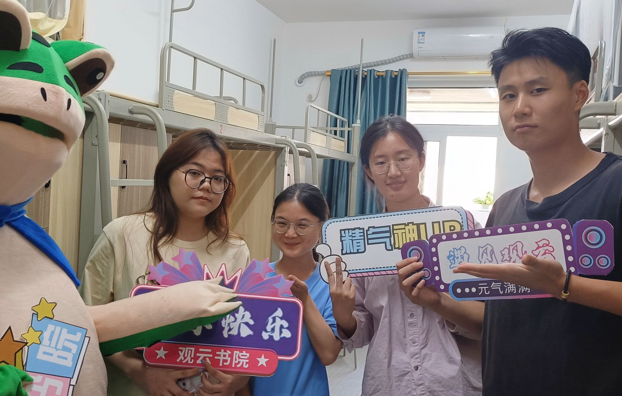 在小云仔们即将到来之前,观云书院考虑到初来乍到的大家面对大学生活和学校充满懵懂,贴心的为各位小云仔们准备了导师的一张图读懂书院物料,在小云仔入住的当天进行走访寝室,拜访来自五湖四海的小云仔们,向他们详细解说书院特色、育人模式以及功能室使用等内容,并且在了解了宿舍情况后教他们如何报修等,希望能够帮助他们尽快熟悉书院,感受到温馨的社区家园氛围。