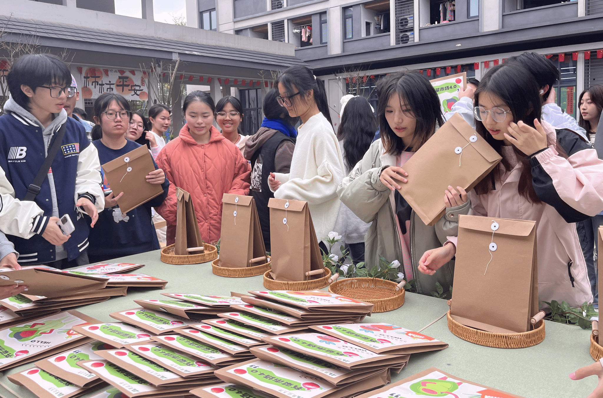 此次活动延续“书菜”盲盒的形式,将88本书籍进行精美包装,以设计为形、书香为魂,集人文、艺术、创意于一体,在洋溢着书香的户外自然环境里,琳琅满目的“书菜”在小摊上,静静等待知音的相逢。在主持人的引导下,同学们选取了自己喜欢的“书”菜盲盒后,迫不及待的打开包装感受着拆盲盒的快乐。阳光洒在书本上,同学们与冬日暖阳一起开启了美妙的阅读之旅。