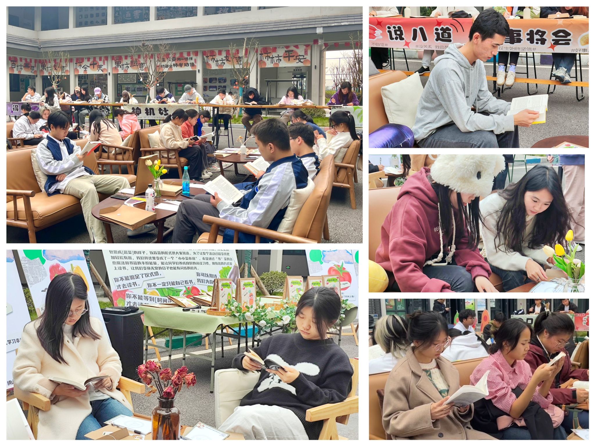 一本书籍、一次探索、一点改变、一种坚持,都能让书香萦绕身边,让文明浸润生活。此次活动选于横山书院中庭进行,不再像往期局限于室内,宽阔的户外阅读空间与舒适柔软的沙发为同学们带来了更优质轻松的阅读体验,让同学们感受自然和人文交融的氛围,尽享书香、花香、墨香环绕的美好时光,以书山之意、自然之姿带动同学们一起“阅”动横山坪。