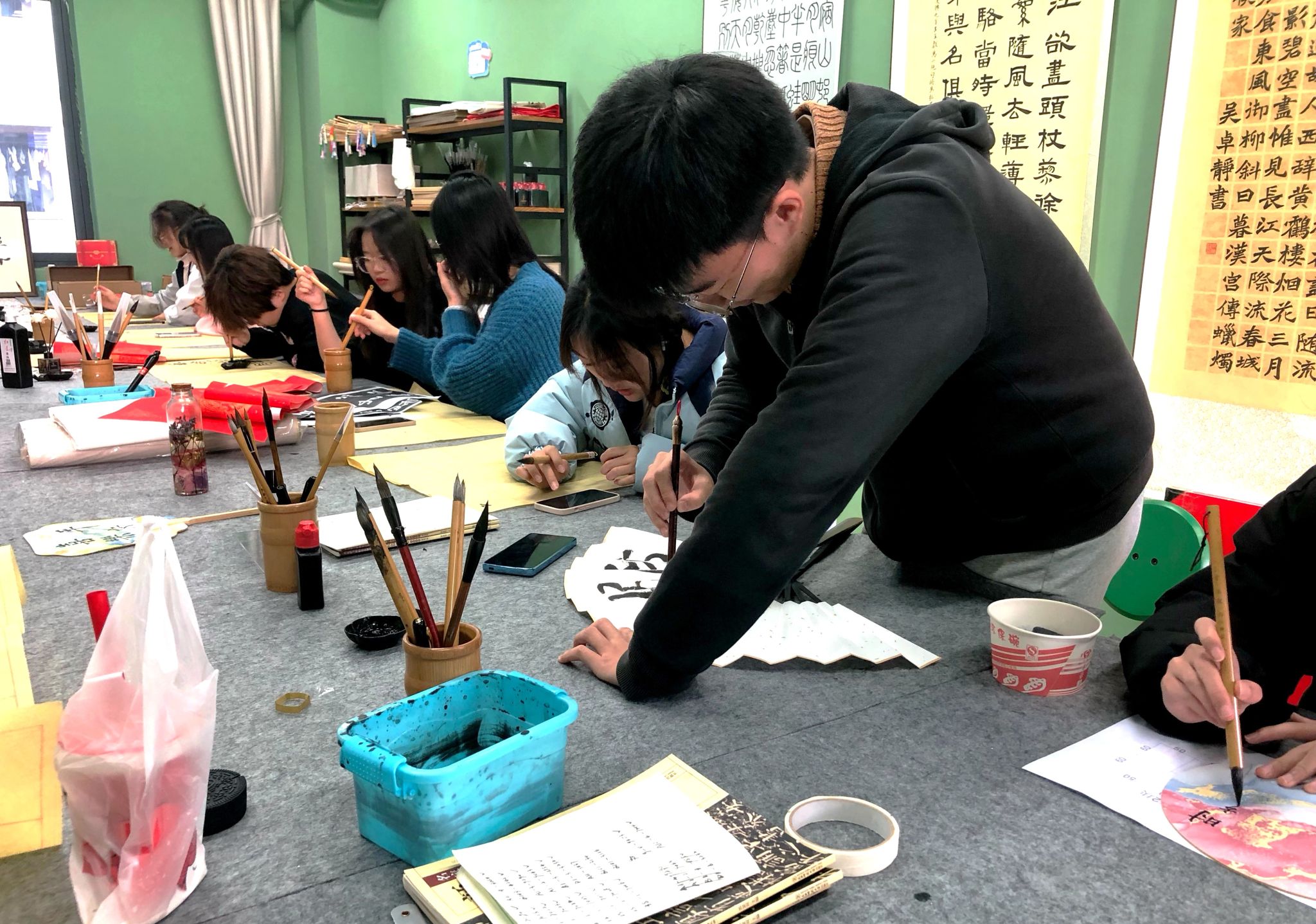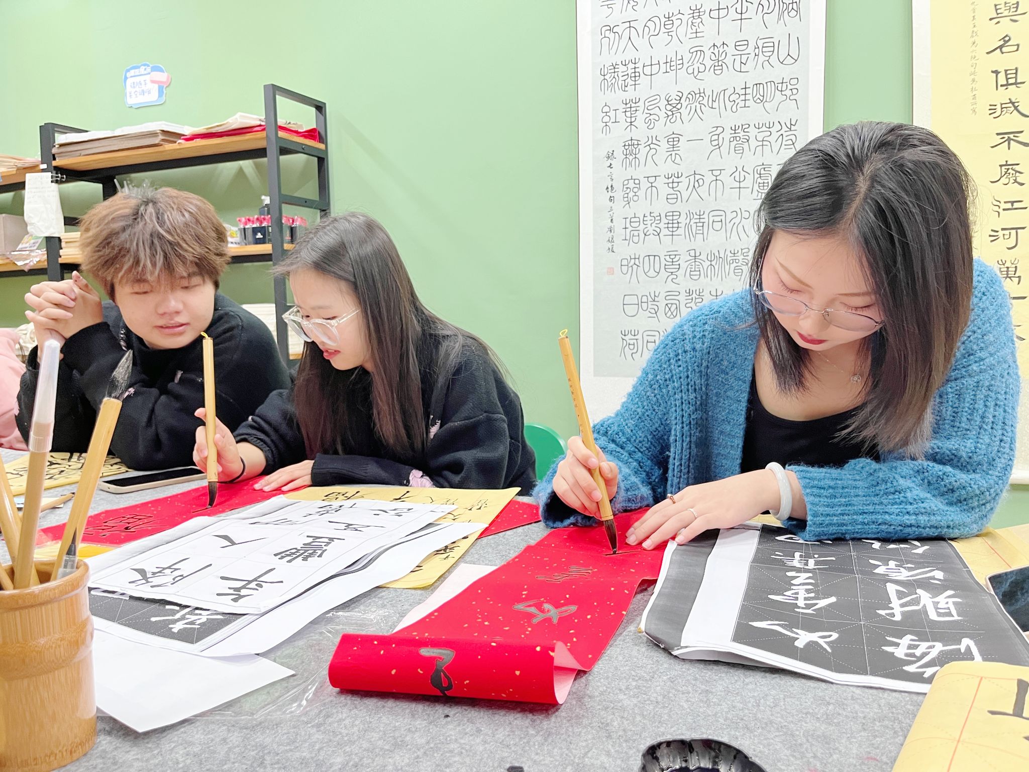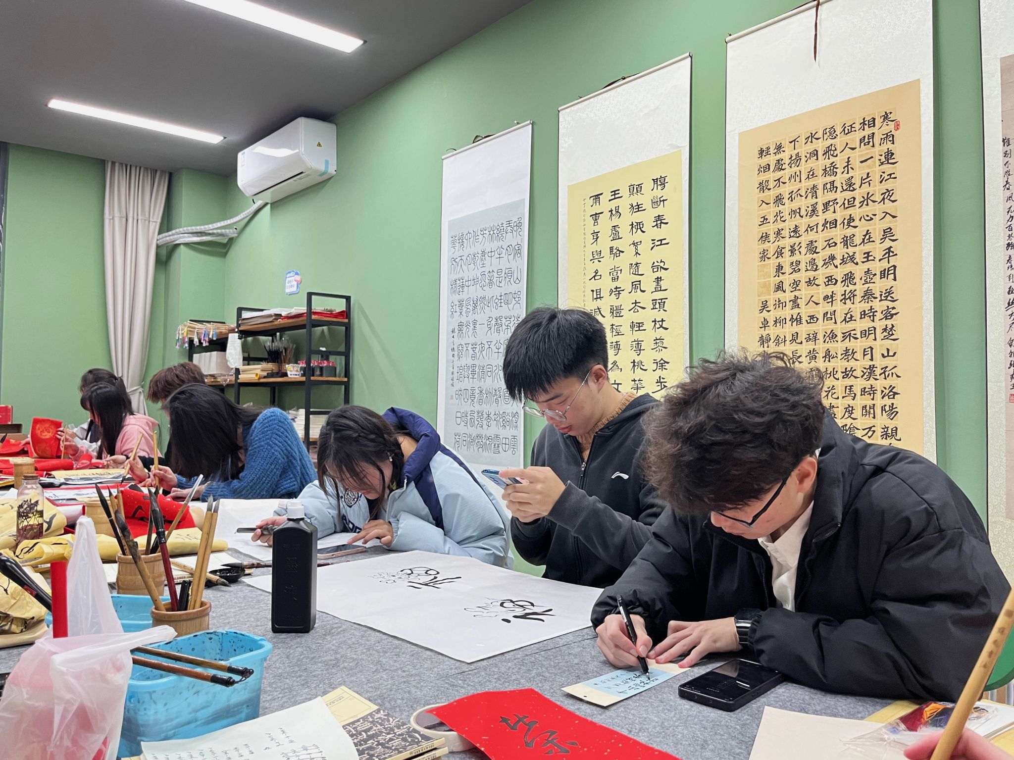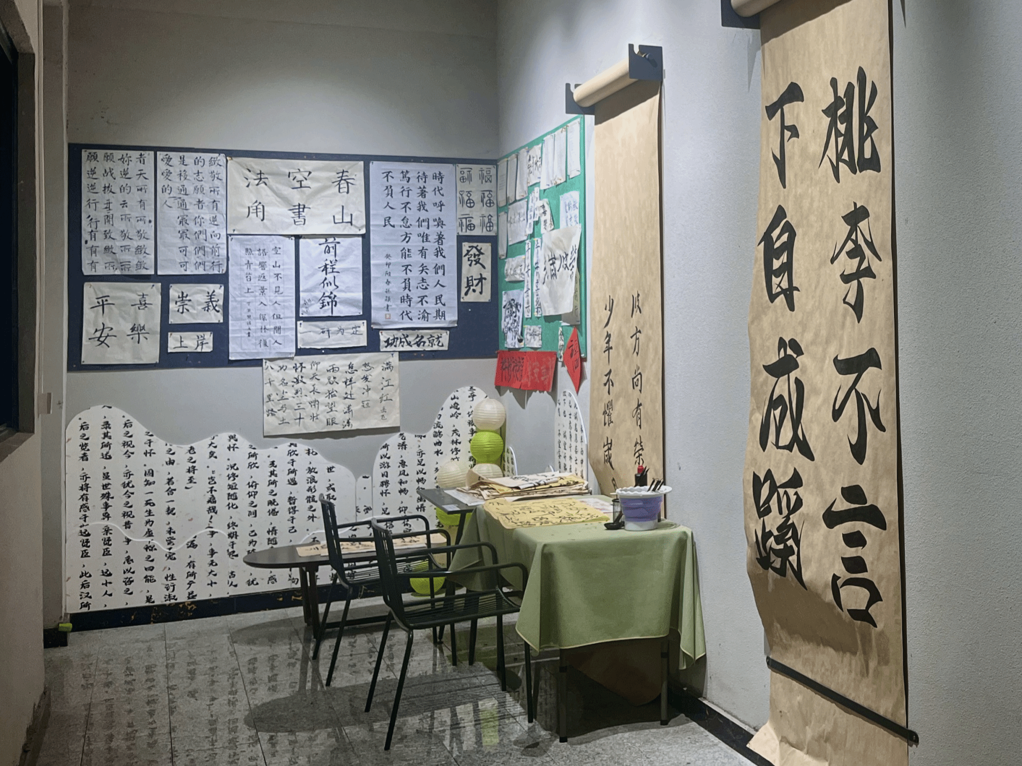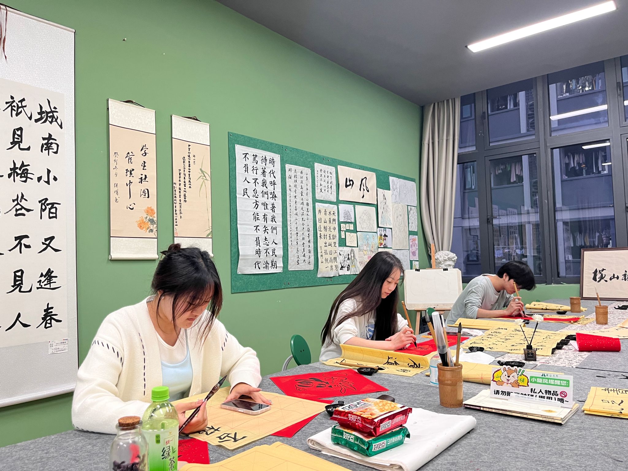 最是墨香能致远,唯有诗韵可润心。为陶冶书院学子诗韵书法艺术情操,激发同学们对传统书法艺术的热爱之情,充分利用书院空间,养成专心书写、规范书写的好习惯,横山书院以“书院1小时·朋辈生态圈”为契机,联合“青花墨字”书画社带领同学们每周三下午16:00在诗画工坊开展书法练习。此外,书院依托“环境育人”的理念,通过空间美化,书法环境改造,提升书院空间的品质,更好的服务于书院学子。