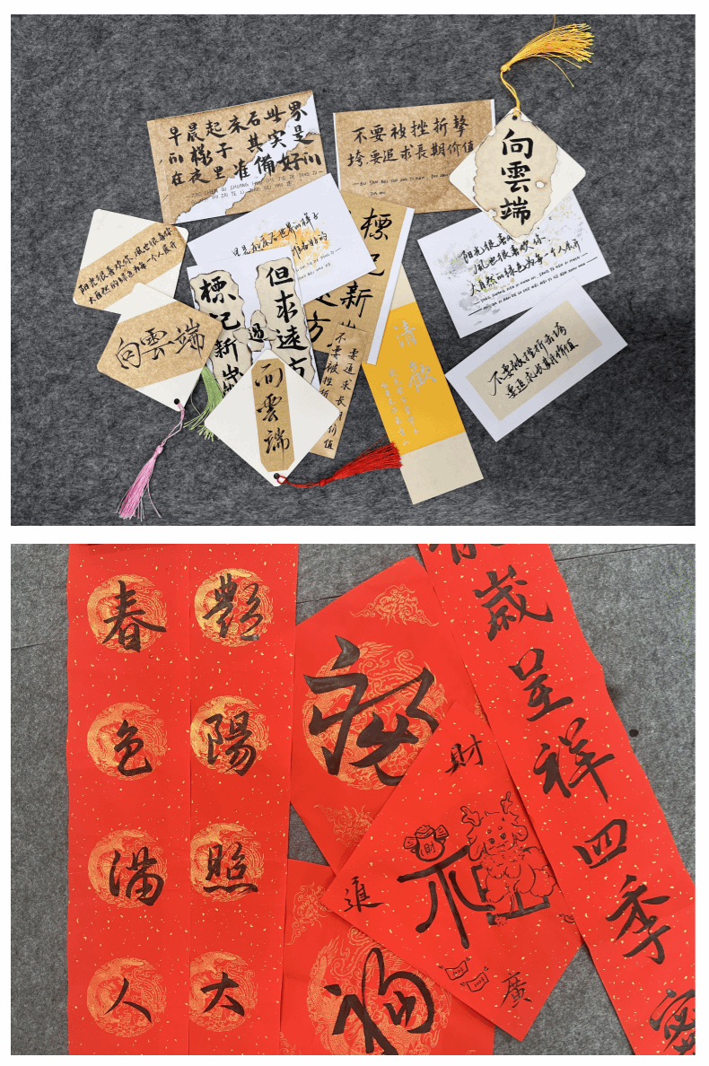 学习书法,次要勤练。经过多次练习,同学们从一开始的握笔生疏到现在下笔自如,他们的字行云流水,或刚劲有力,或温婉细腻... ...慢慢形成了属于他们的独特风格。同学们在不断地练习中反复思考和领悟书法的内涵和精神,将其运用到自己的生活和工作中去,成为自己精神追求的一部分。