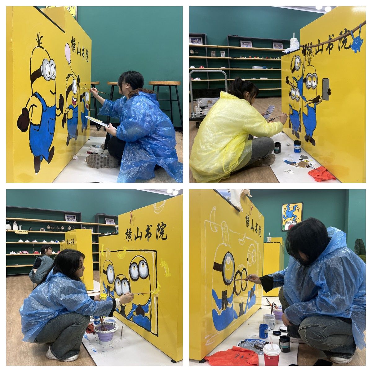 丰富学子们的校园生活,增强动手能力,横山书院Splatoon涂鸦工作室以学生为核心,结合艺术和创意思维特点,整合、提炼涂鸦文化内涵,在本学期开展了百人涂鸦系列活动。同学们在空白的墙上尽情发挥想象,创作出自己的一方天地。打造了以“涂鸦”为核心的墙文化主题校园大环境,焕新书院空间,构建工匠精神和校园新文化,同时也提高了同学们的团队合作精神与社交能力。