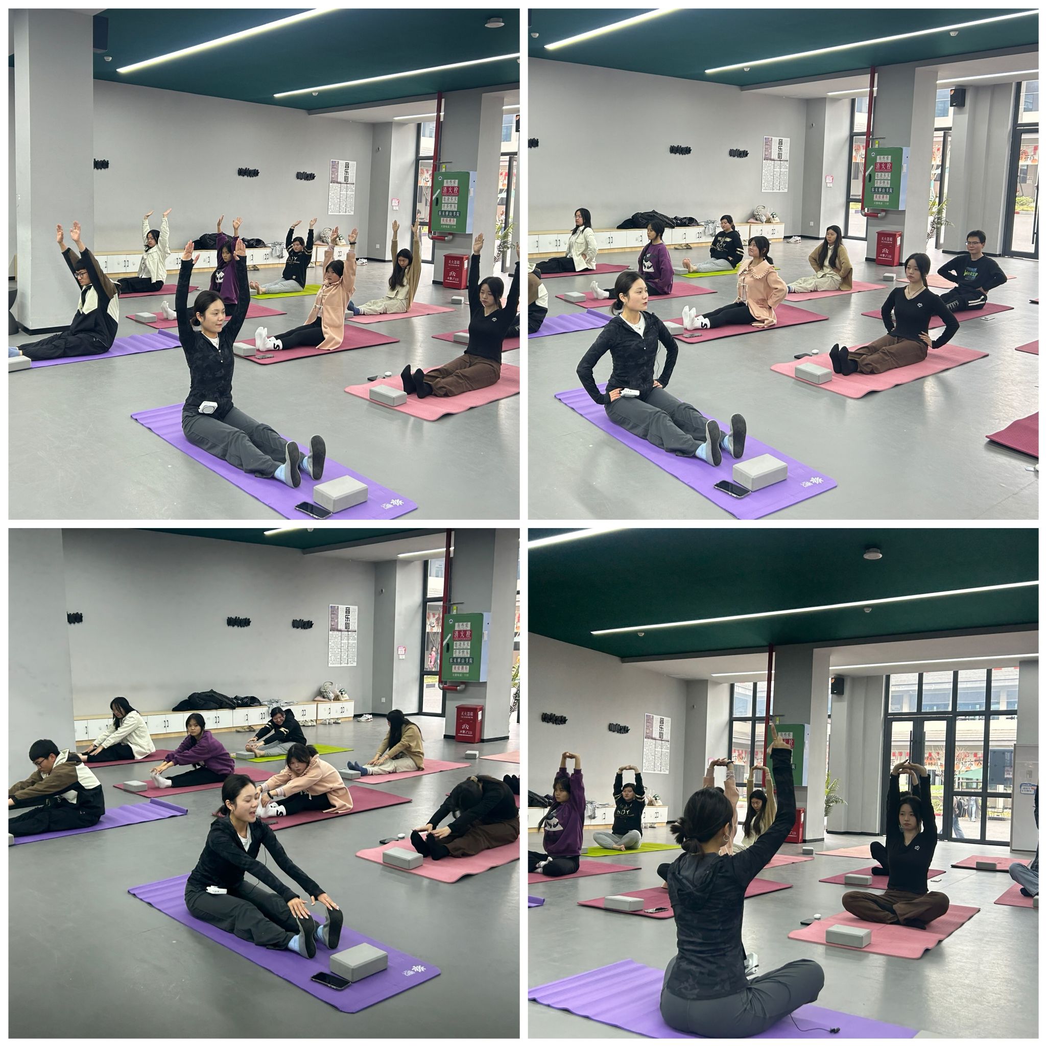 “瑜伽的妙之处在于它能够融合身心,通过演练体式、呼吸调控和冥想等,让你从日常的烦扰中解脱,进入一个充满和谐与内在平衡的状态。”活动过程中刘老师说到,并通过系列舒展运动,引导同学们通过腹式呼吸法矫正日常生活中因错误坐姿所带来的脊柱问题。同时老师还建议同学们调整发力方式,改掉坏习惯。令我们印象深刻的是老师纠正同学们的动作,不断的调节手的发力方向、脚的力度、腰的弯曲幅度等,做到将理论知识和实践相结合,帮助同学们更好的养成体态与仪态,提升自我气质。