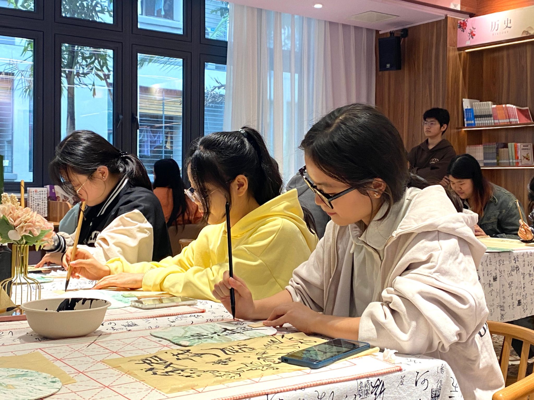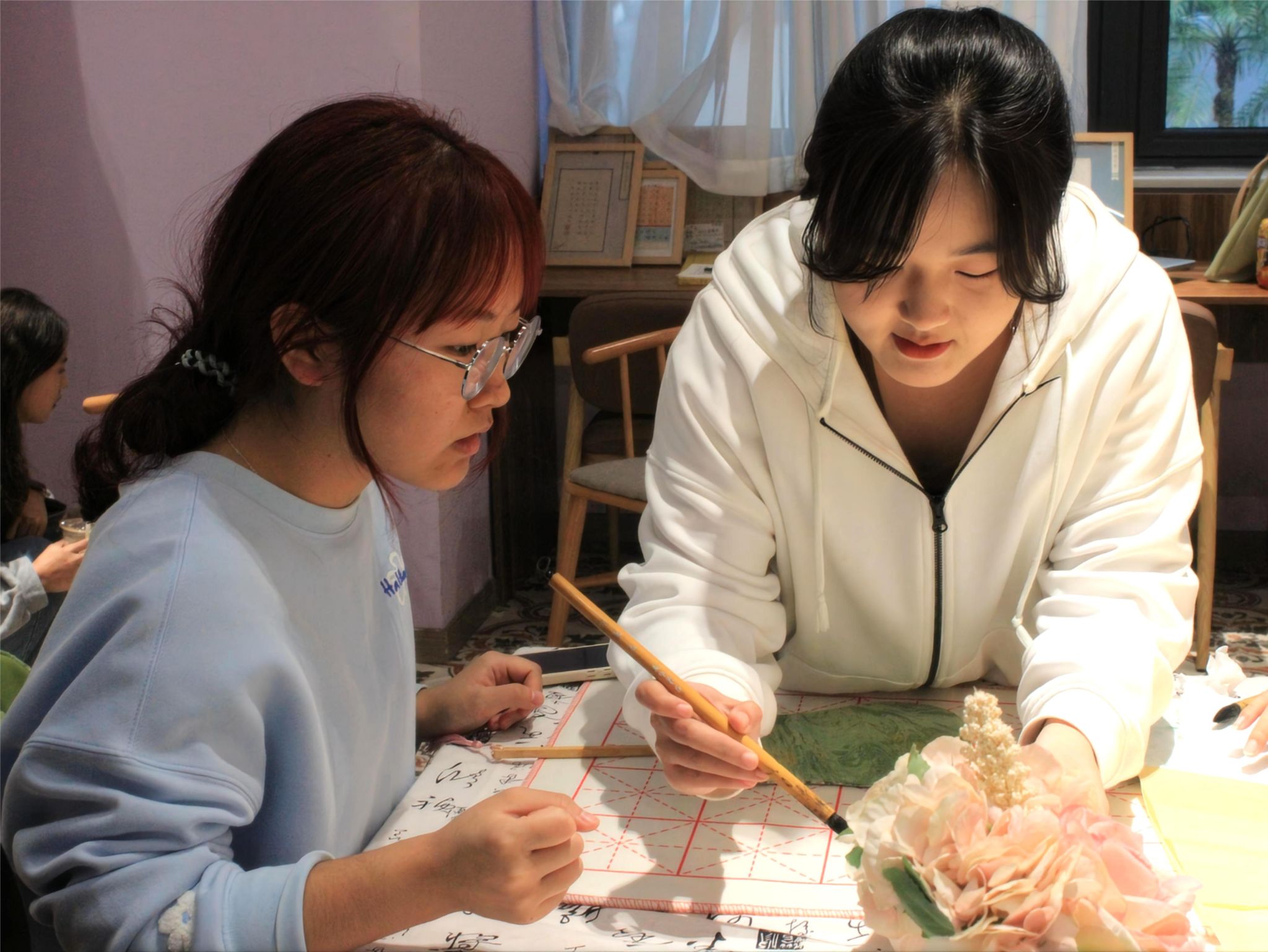 同学们拿起毛笔,轻轻蘸取墨水,在青花墨字书画社同学的指导下,小心翼翼地运笔。有的同学在扇面上题写了寓意吉祥的诗句,寄托着对未来的美好祝愿;有的同学则选择了简洁而富有哲理的词语,表达着对生活的深刻思考。