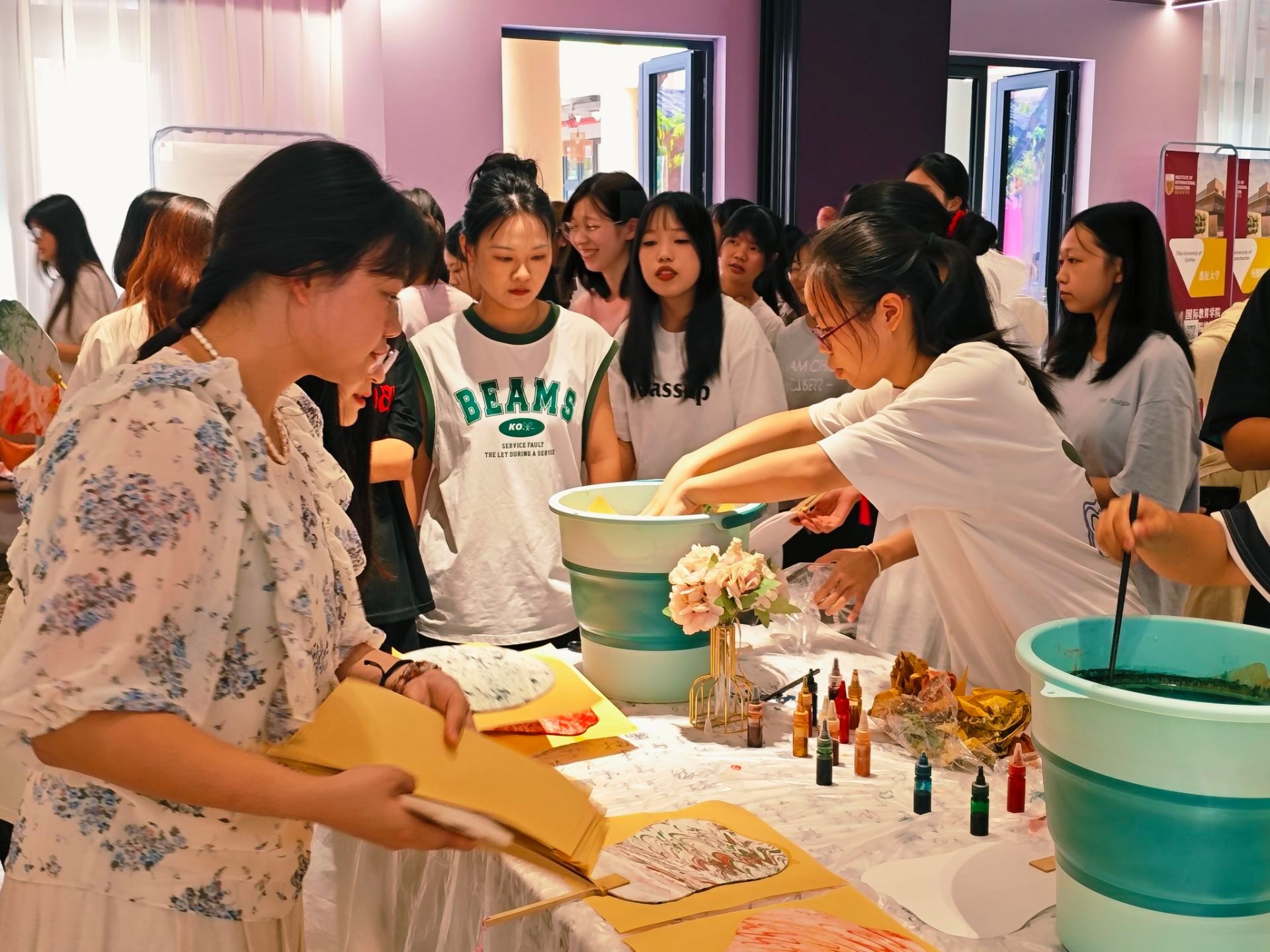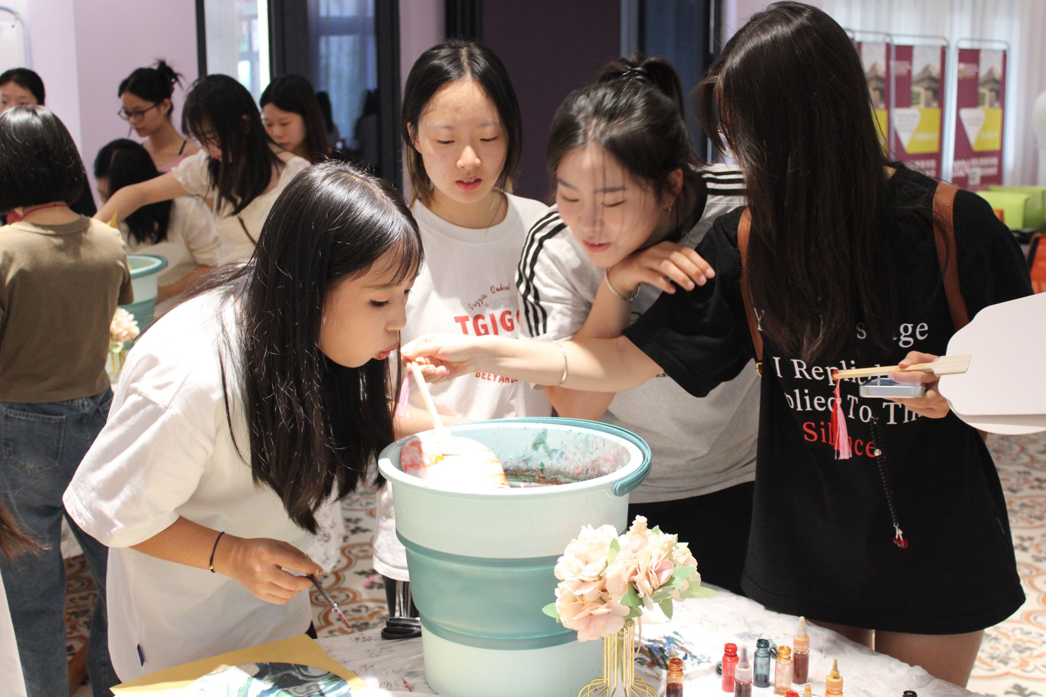 同学们从书院配色中汲取灵感,制作了书院配色漆扇,漆彩飞扬,千文万华,书院美学便如“漆”而至。
