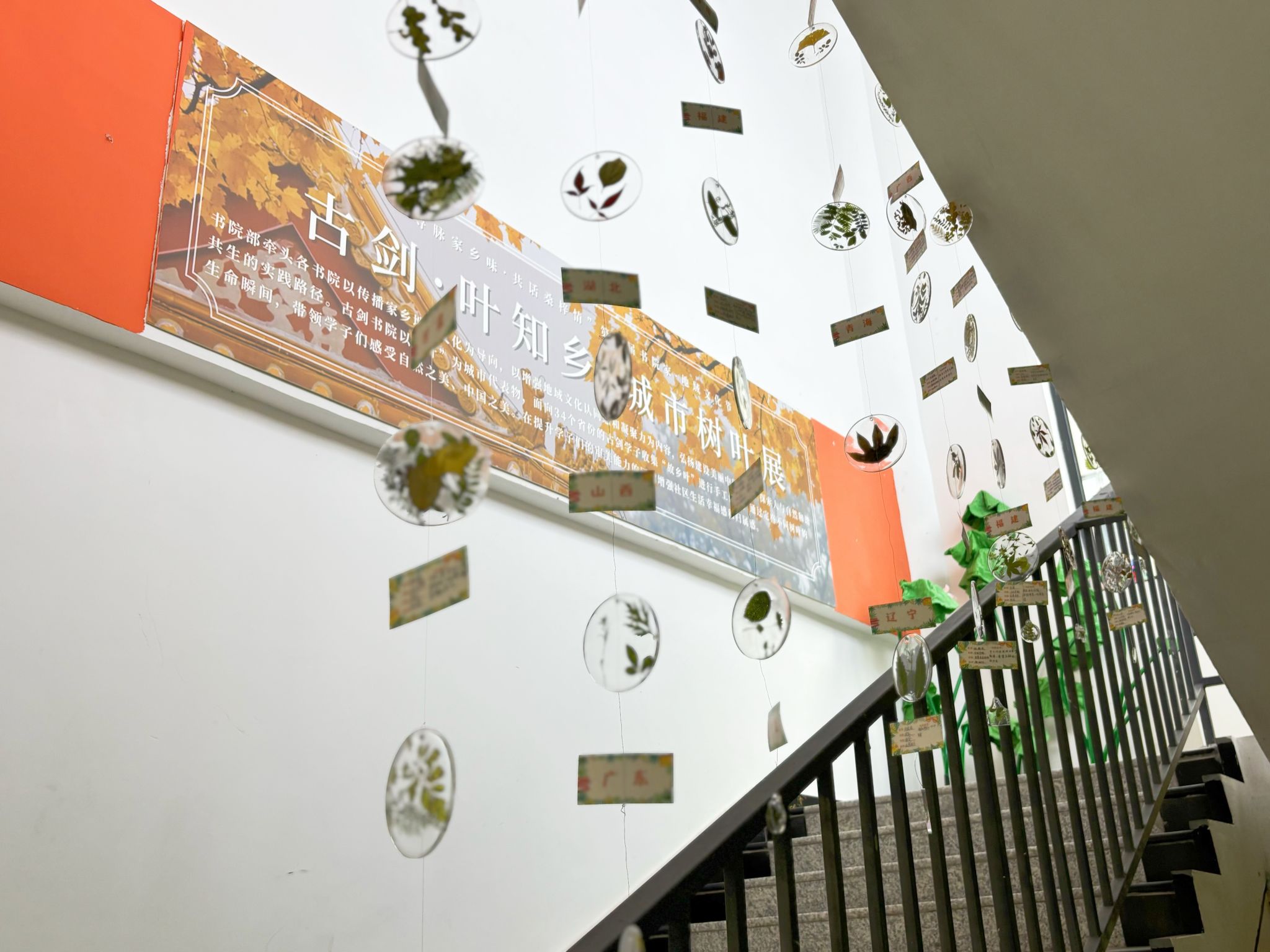 以传播家乡地域文化为导向,以增强地域文化认同感和凝聚力为内容。古剑书院以“叶”为城市代表物,面向34个省份的古剑学子收集“故乡叶”进行手工创作,通过定格不同树叶的生命瞬间,带领学子们感受自然之美、中国之美。并于10月16日在古剑书院楼梯间(毗邻GJ101含光·报告厅)展出。